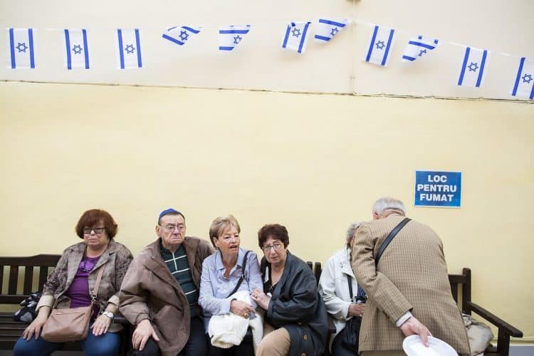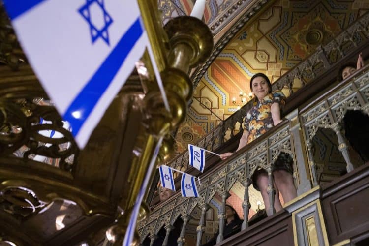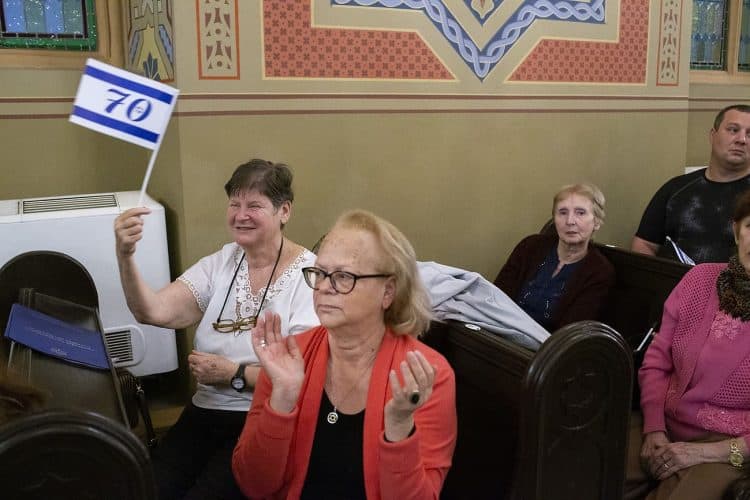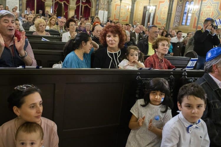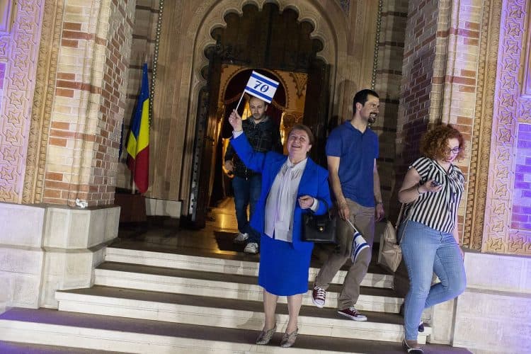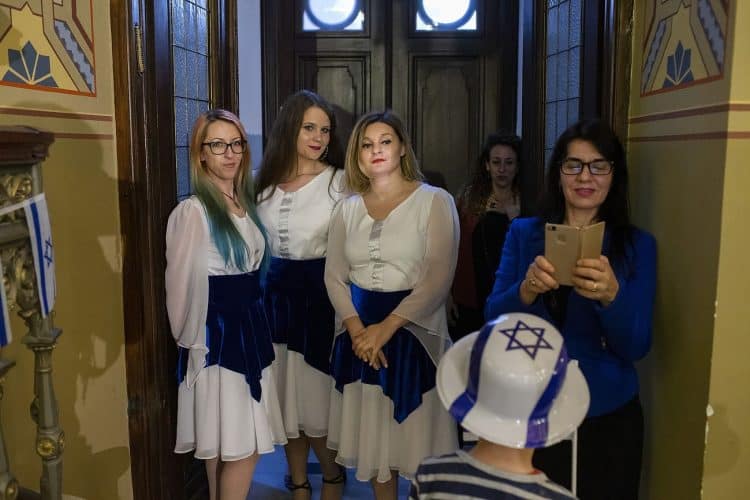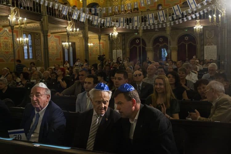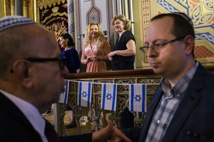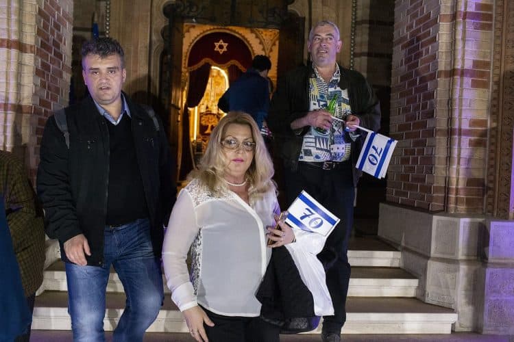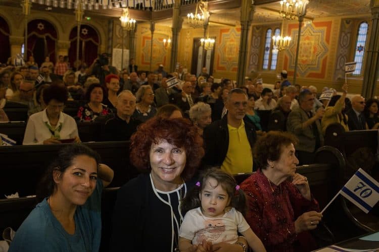 BUCHAREST, ROMANIA - APR 19: Jewish people, ambassadors, other officials and guests celebrating Israel's 70th Independence Day.at the Coral Temple in Bucharest, Romania, Thursday, April 19, 2018. Photography by Mugur Varzariu/Getty Images/Newsweek.