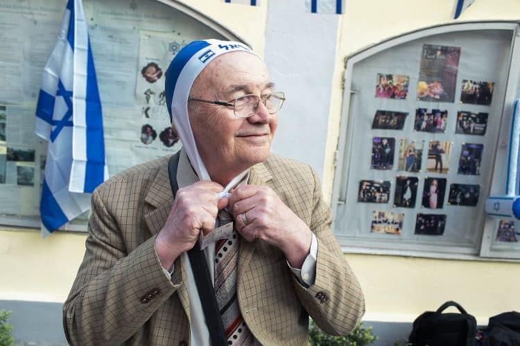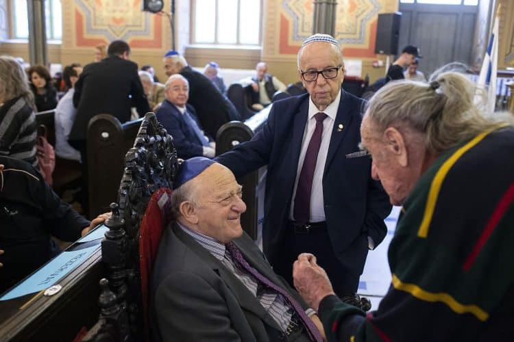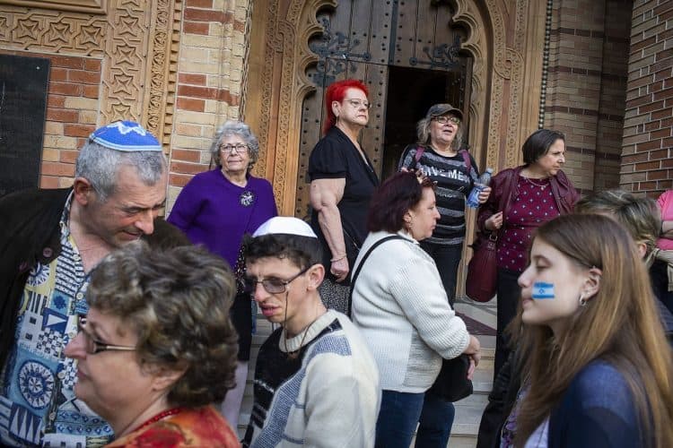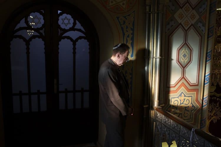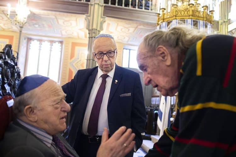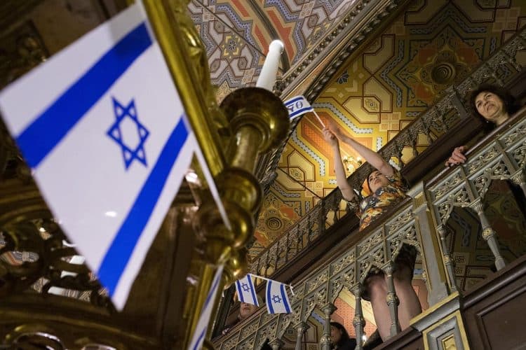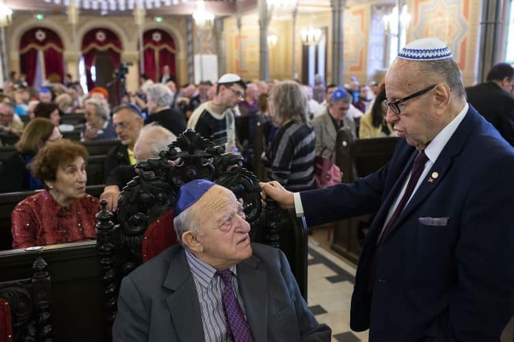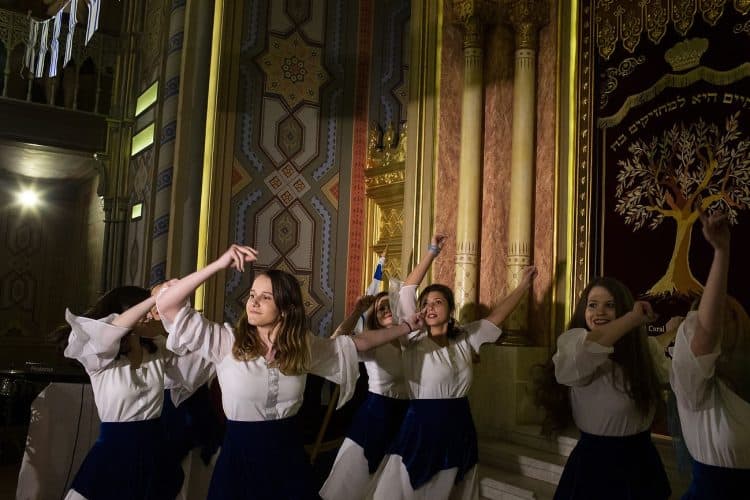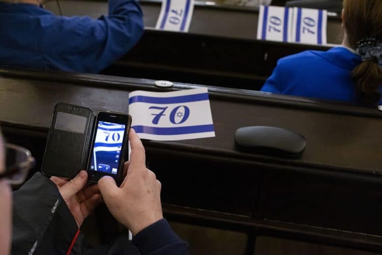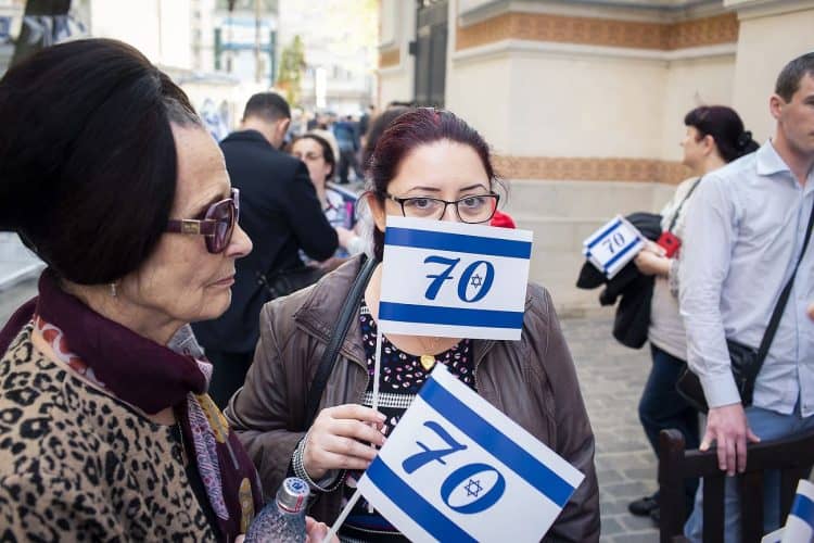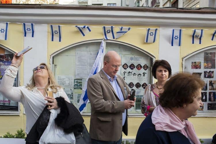 BUCHAREST, ROMANIA - APR 19: Jewish people, ambassadors, other officials and guests celebrating Israel's 70th Independence Day.at the Coral Temple in Bucharest, Romania, Thursday, April 19, 2018. Photography by Mugur Varzariu/Getty Images/Newsweek.