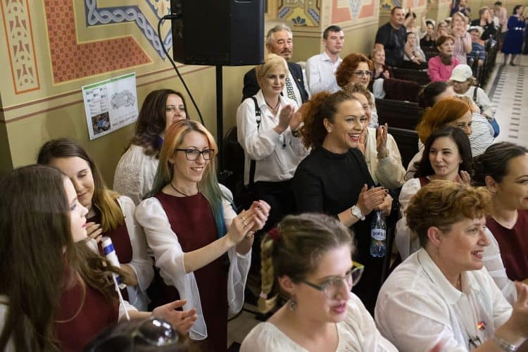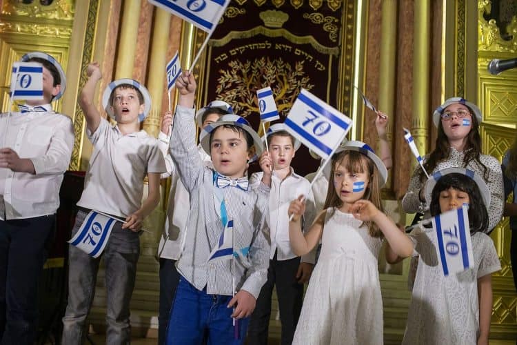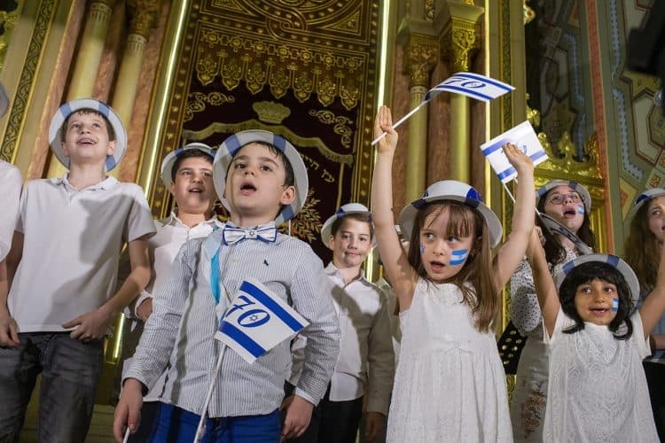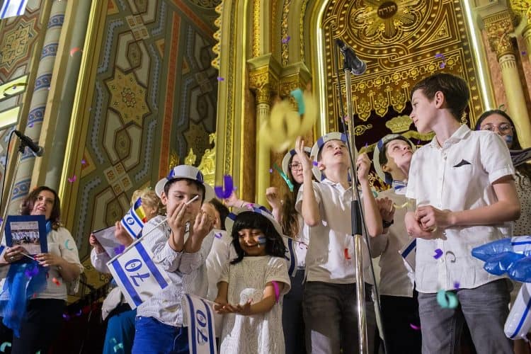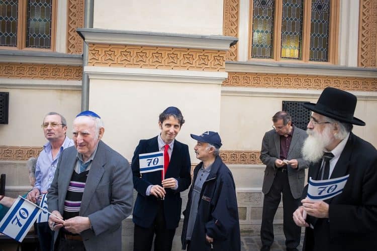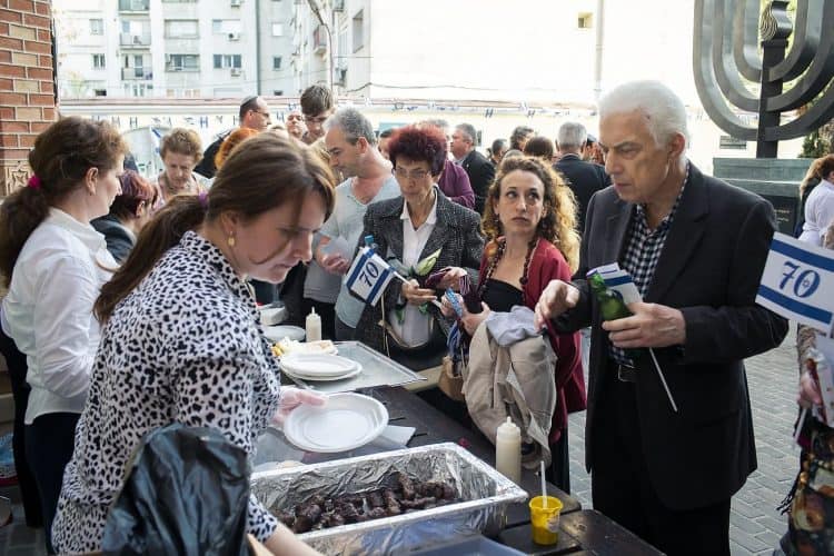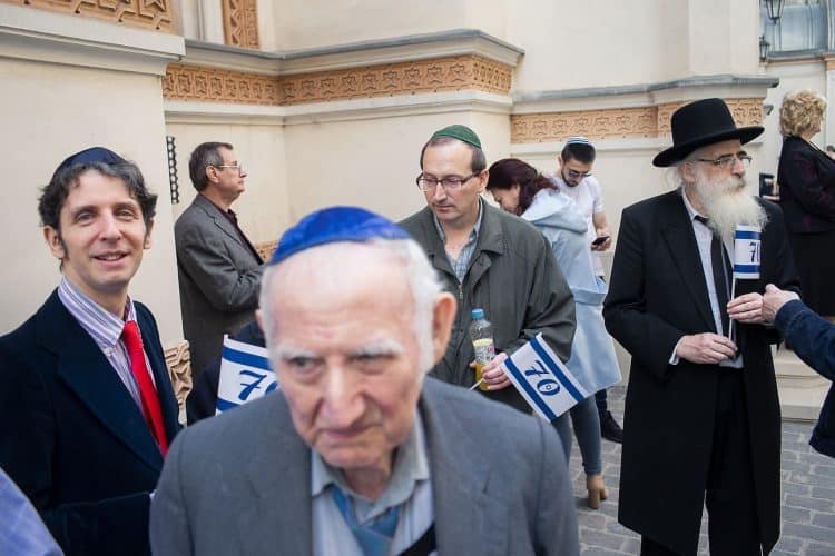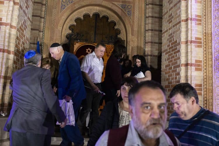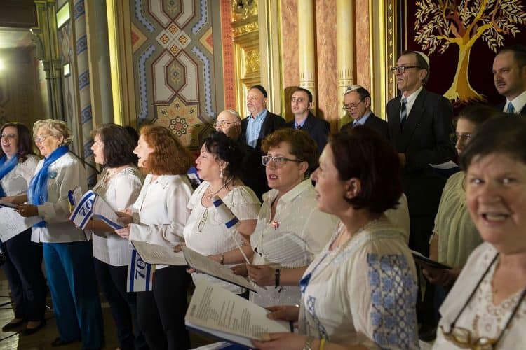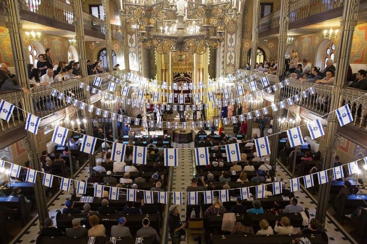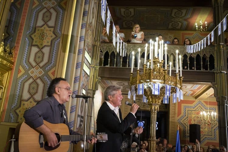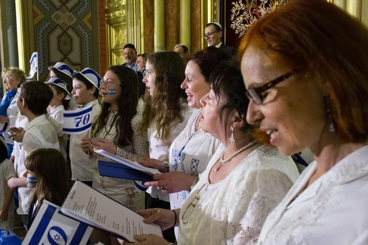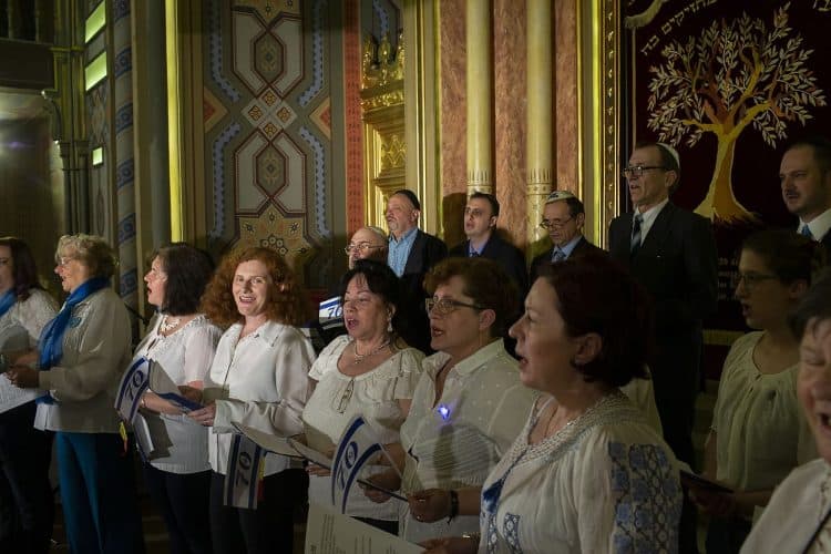 BUCHAREST, ROMANIA - APR 19: Jewish people, ambassadors, other officials, and guests celebrating Israel's 70th Independence Day at the Coral Temple in Bucharest, Romania, Thursday, April 19, 2018. © Mugur Varzariu