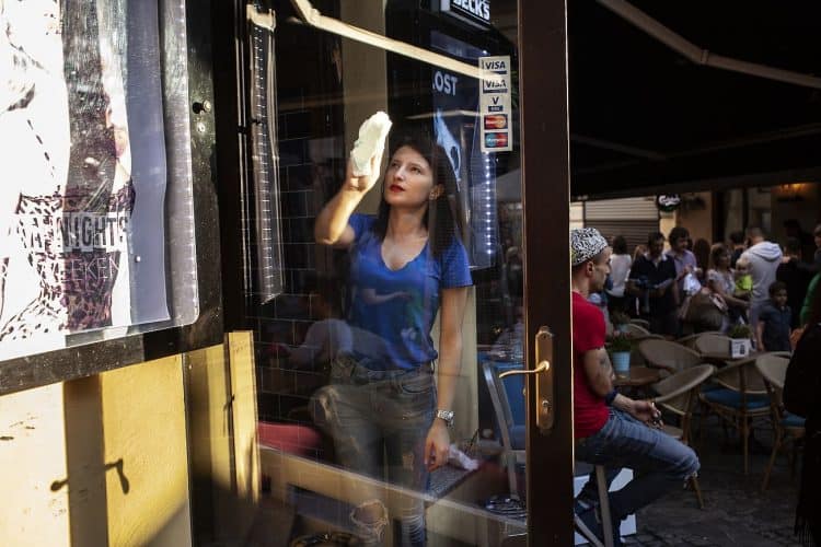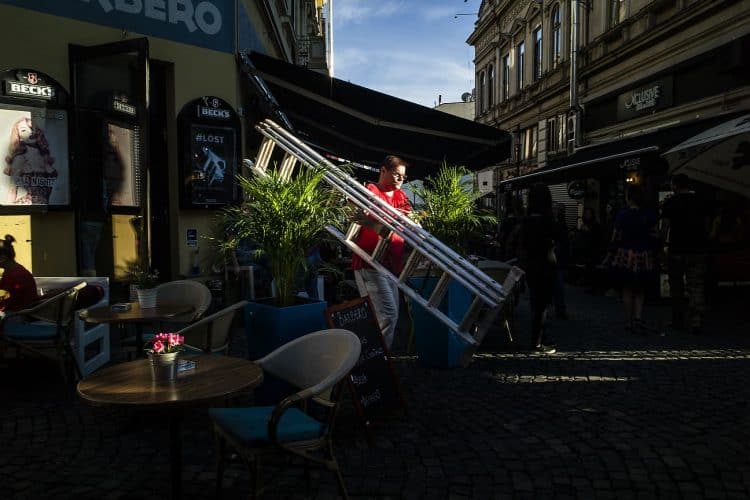 BUCHAREST, ROMANIA - MAY 14: People walking in the old part of the city in Bucharest on May 14, 2016. Photography by Mugur Varzariu/Getty Images/Newsweek.