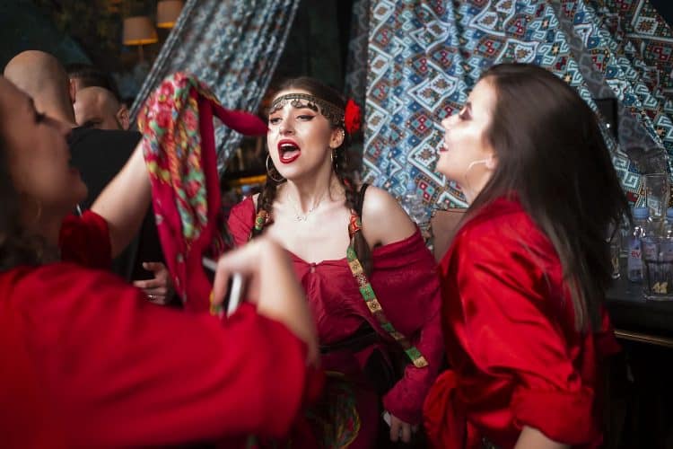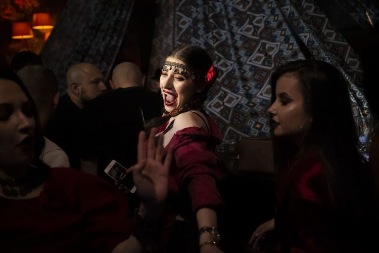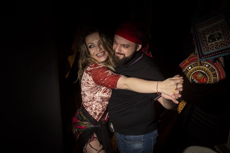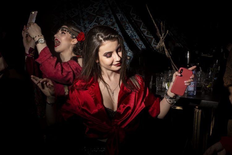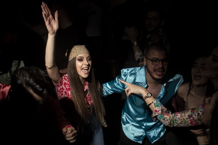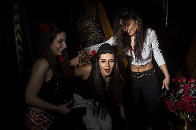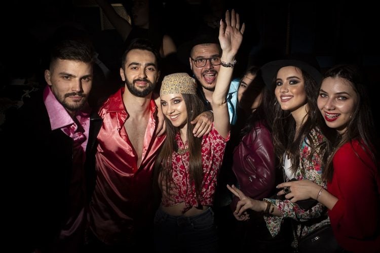 People having fun during a Roma theme party in Gaia club, as seen in Bucharest on April 7, 2019.