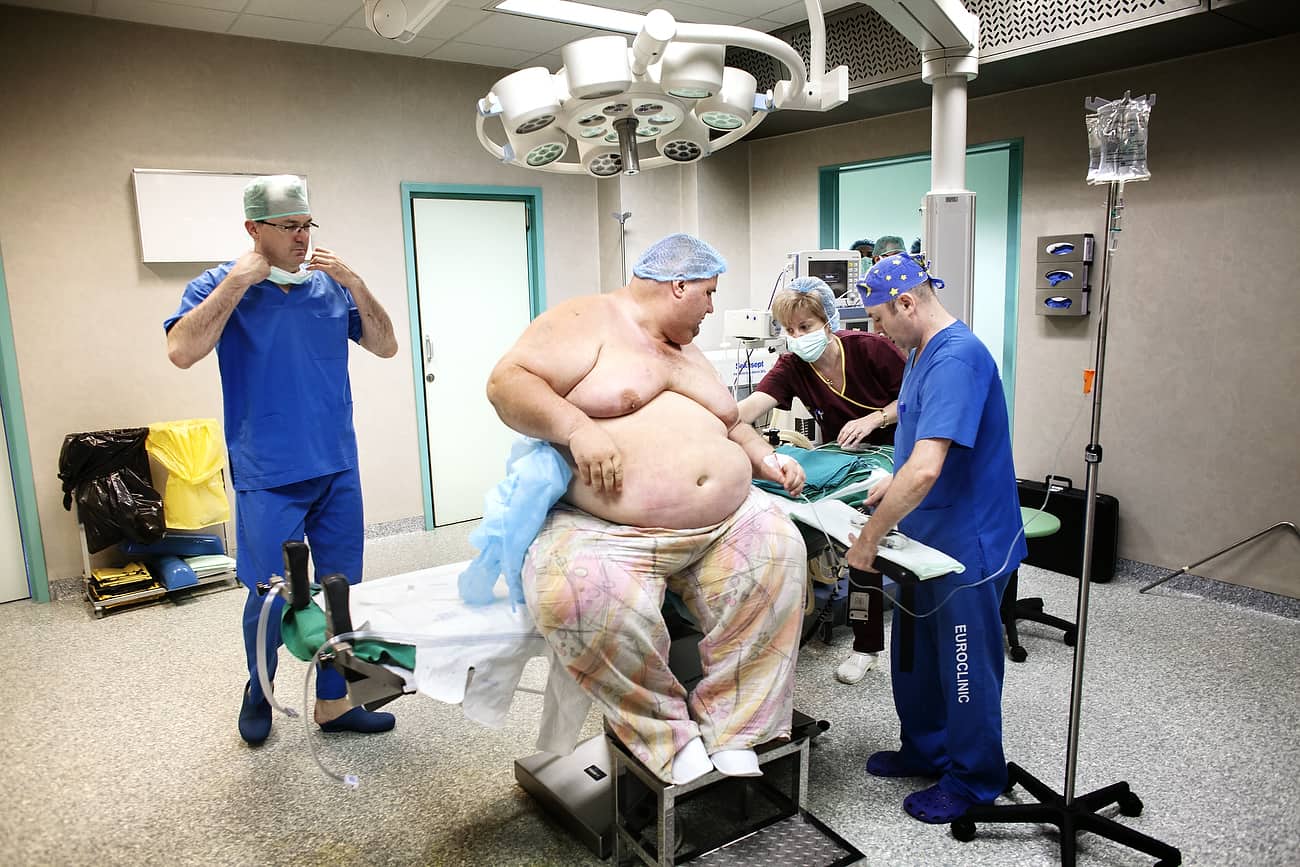 I first met Valentin in his hospital room. It was his first time in Bucharest and I could tell by the look in his eyes that he was lost and scared. It’s not often one can observe up close a 245 kg naked man, so I wasn’t far from being scared myself. He was there to meet with the doctor and prepare himself for a stomach sleeve procedure.