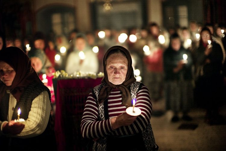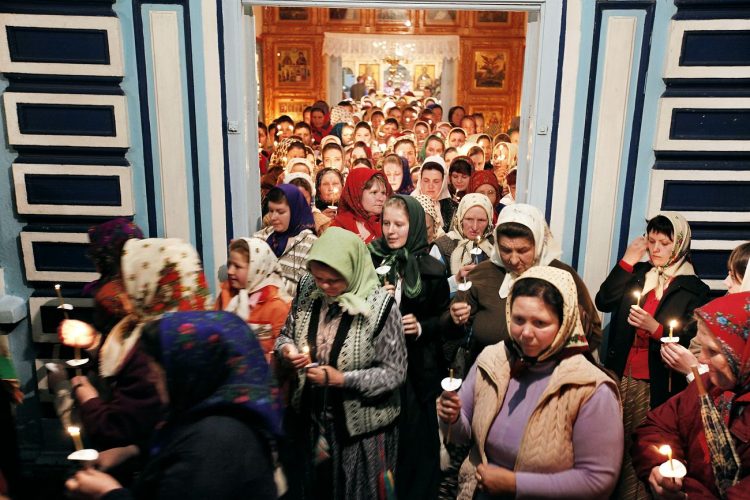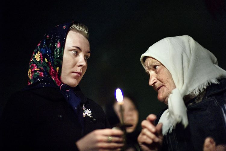 Ethnic Russians attend the Maundy Thursday religious service in Sarichioi, eastern Romania, Thursday, April 1, 2010. The Russian minority inhabits the regions near the Danube Delta in Romania and consists mostly of fishermen will celebrate Easter on April 4 along with the country's Catholics and the Orthodox majority.