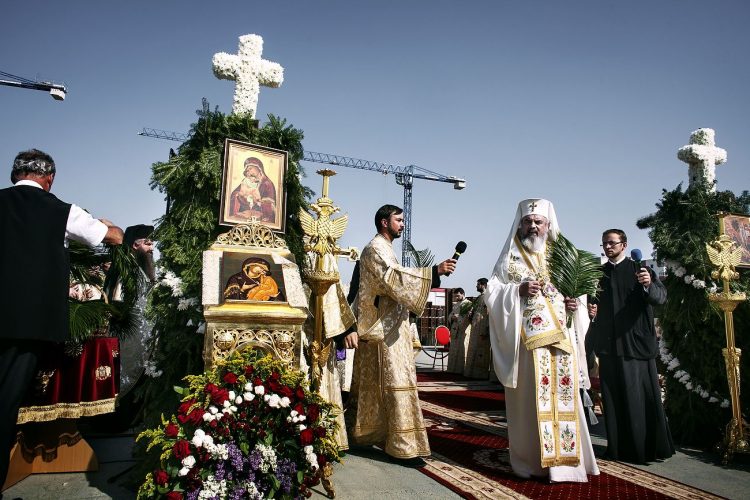 Daniel, the Patriarch of the Romanian Orthodox Church, ends with a speech his blessing ceremony of the believers outside the National Cathedral. Priests walk during an orthodox PalmSunday pilgrimage from National Cathedral to the Patriarchy as seen in Romania, Saturday 27, 2013.