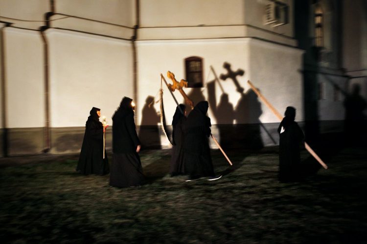 Ethnic Russians walk with candles during an Easter religious service in Sarichioi, Romania, Sunday, April 4, 2010. The Russian minority which inhabits regions in the Danube Delta in Romania and consists mostly of fishermen celebrates Easter along with the country's Catholics and the Orthodox majority.
