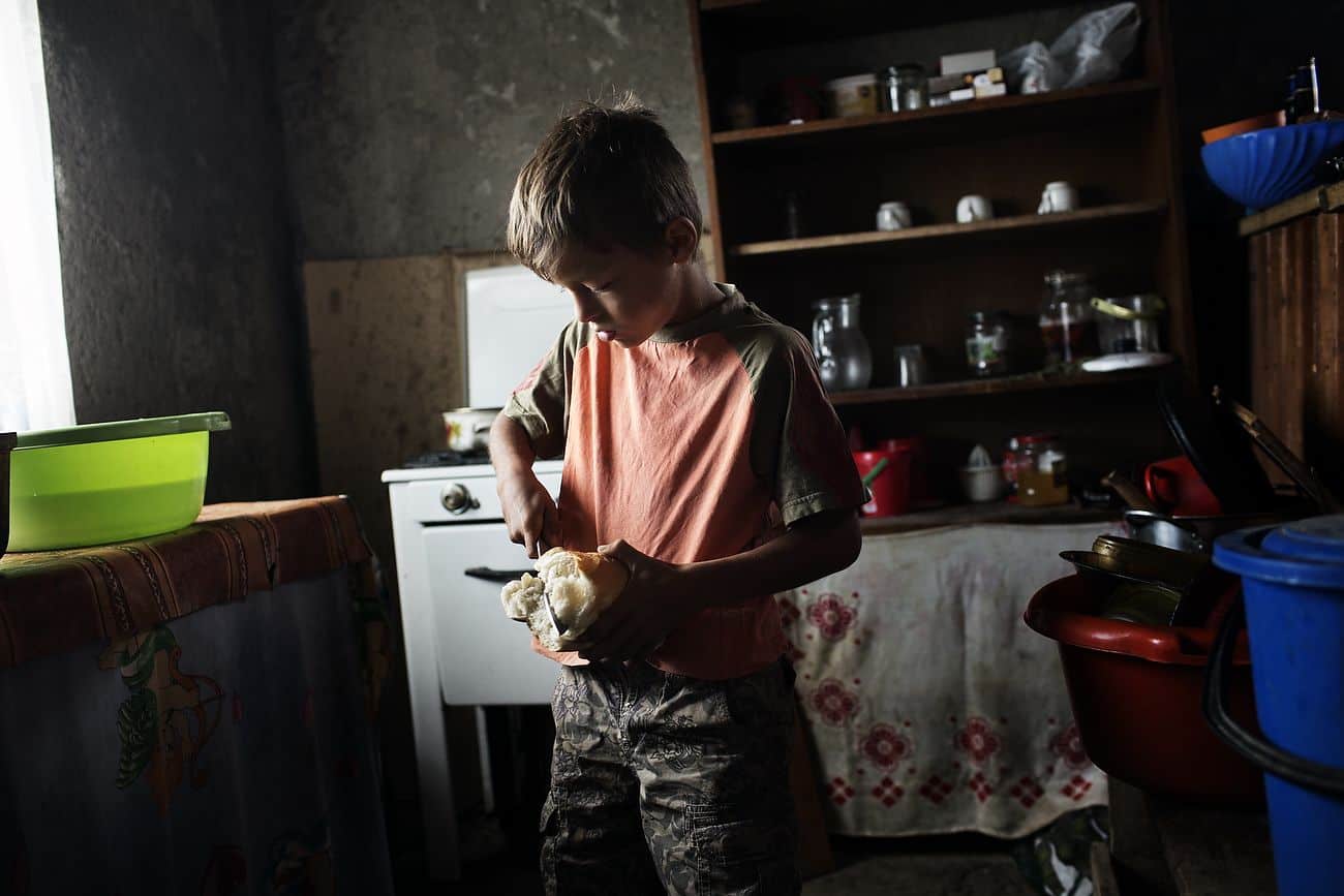 Without running water they bath now and then. In the winter they can’t read after four in the afternoon. To them, breakfast holds almost no meaning. Unless they have some leftovers from the night before or if you count the milk and the bread they get at school.