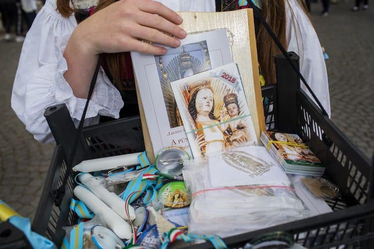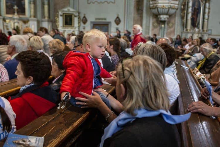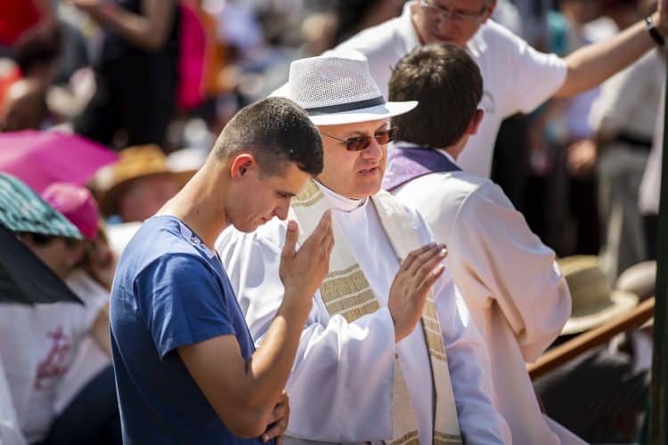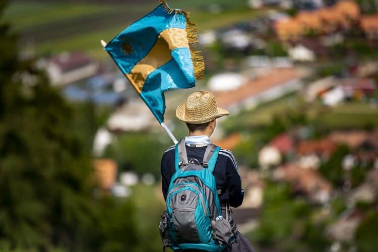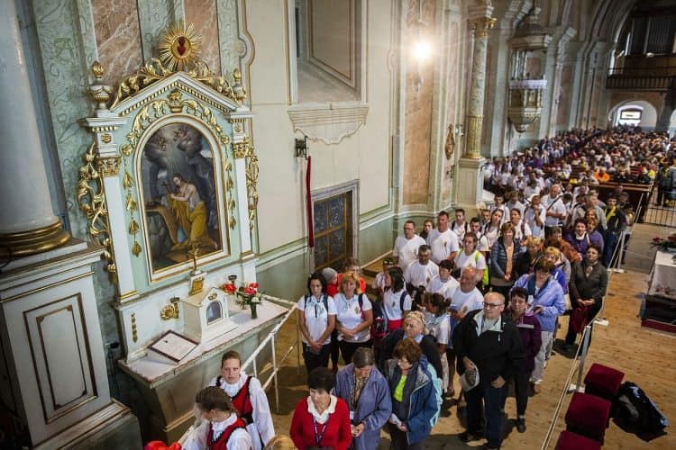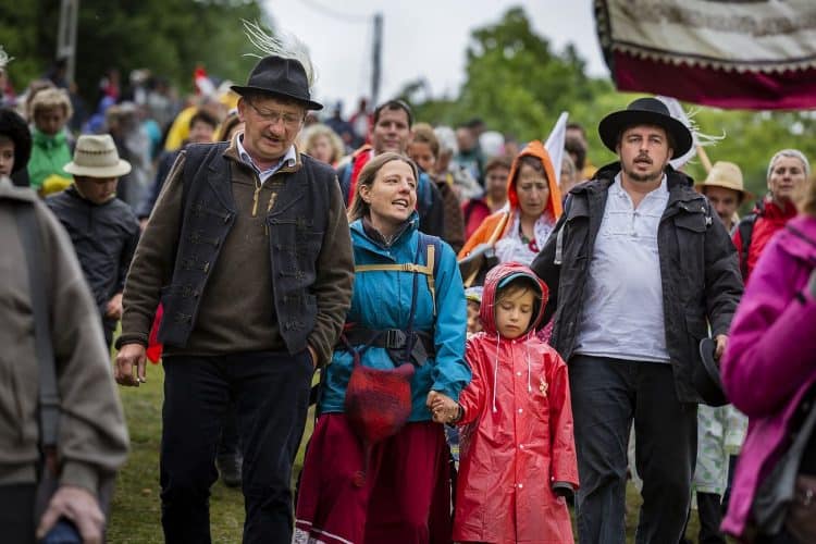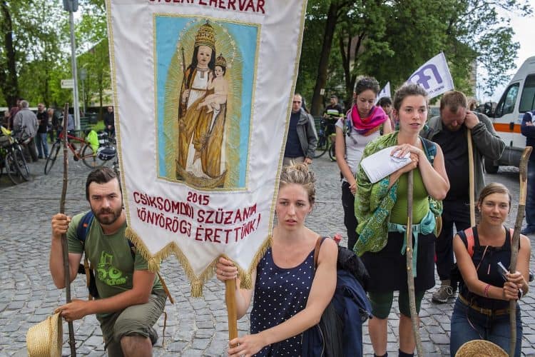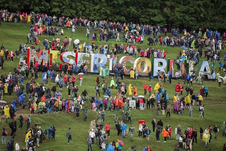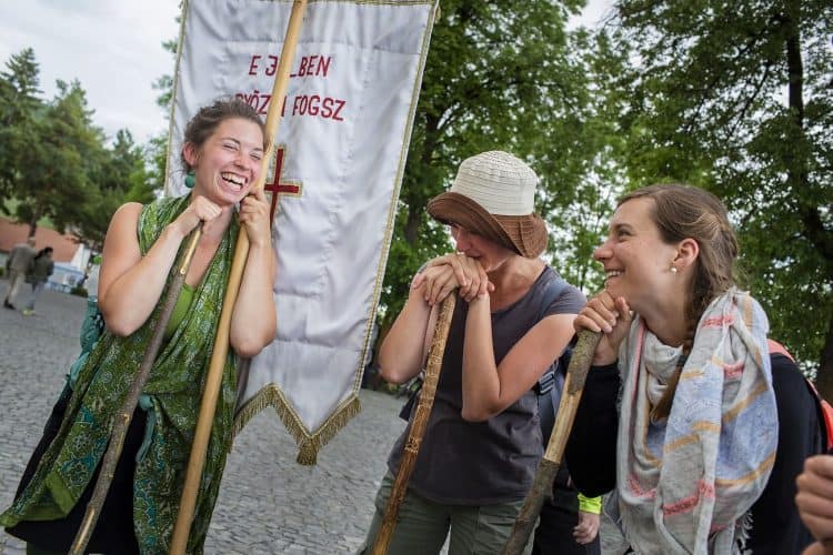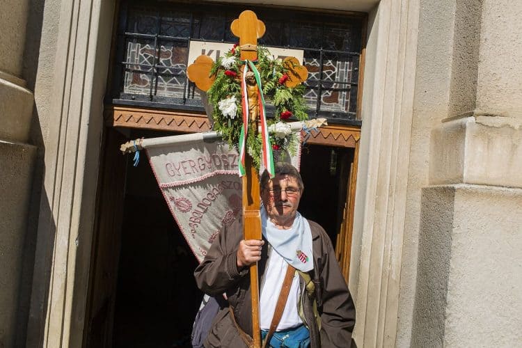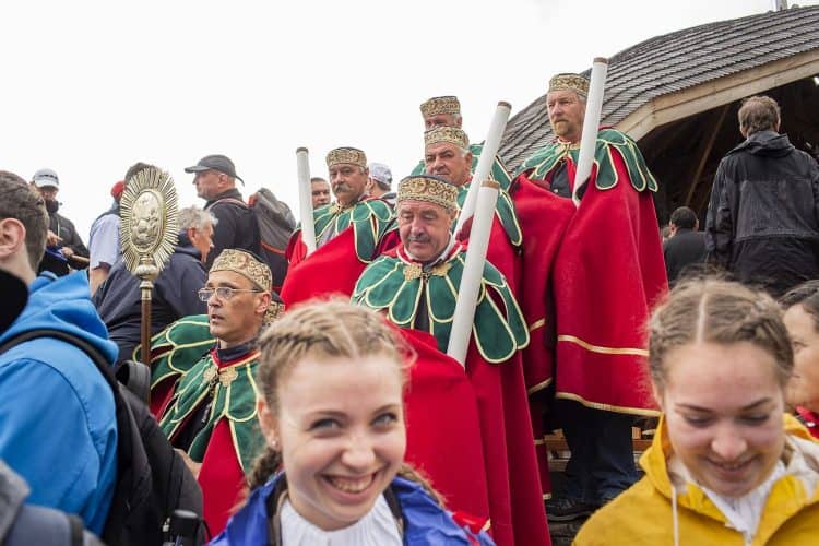 SUMULEU CIUC, ROMANIA - MAY 18: Hungarians from all over the world attending the early pilgrimage hold at Sumuleu Ciuc in Romania, as seen on May 18, 2018. Sumuleu Ciuc became a pilgrimage site in 1567, when Hungarian king John II Sigismund Zápolya wanted to convert the Székely population of the upper Csík to Protestantism. The Székelys refused to abandon the Catholic faith and resisted. A battle took place on a nearby field, on Saturday before Pentecost 1567, from which the Székelys emerged victorious. The monks saw this as a sign of the care of Virgin Mary, and since then, this event has been commemorated by a pilgrimage when the believers gather on Pentecost every year. Beside its religious importance, the pilgrimage has also become a community event demonstrating spiritual unity of Hungarian people living in and outside the historical region of Transylvania. © Mugur Varzariu