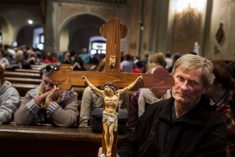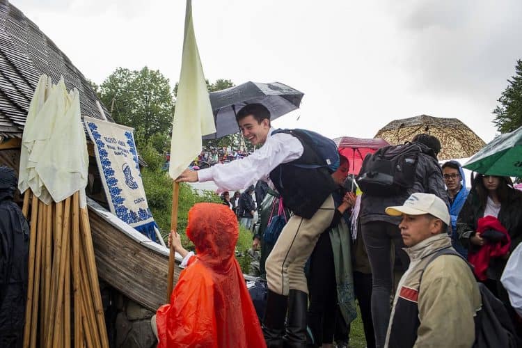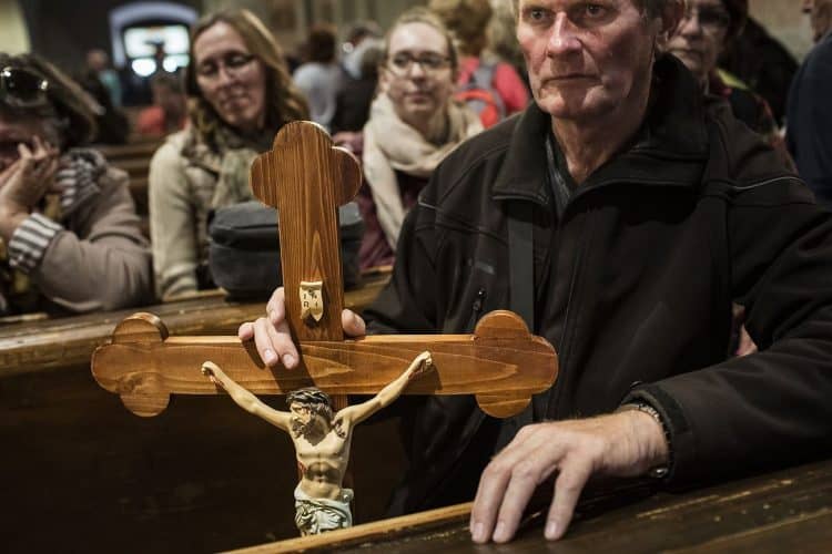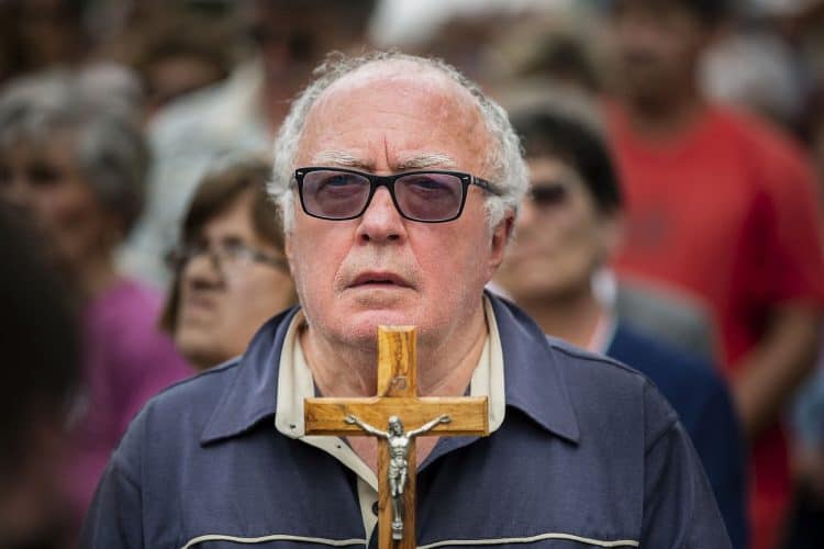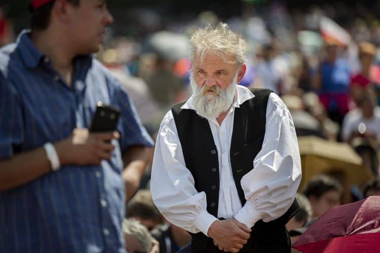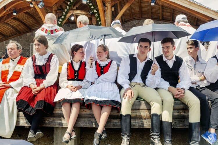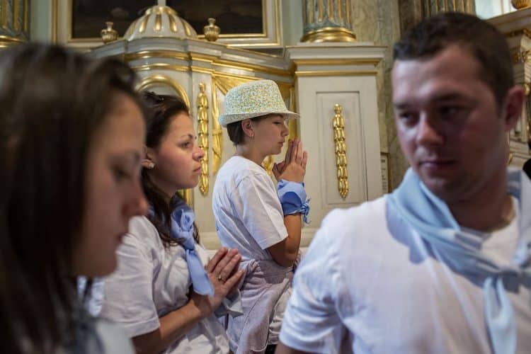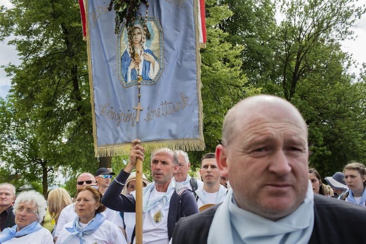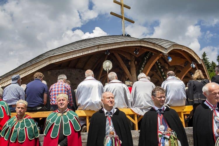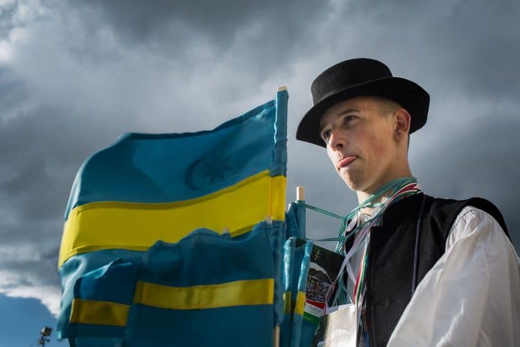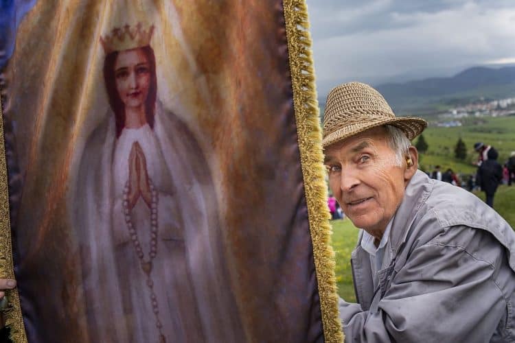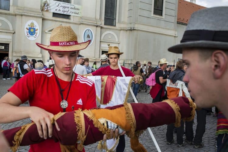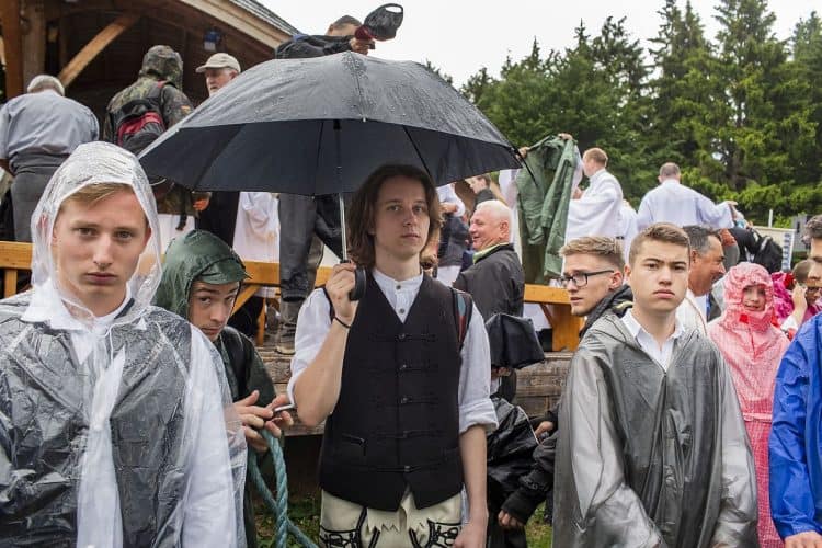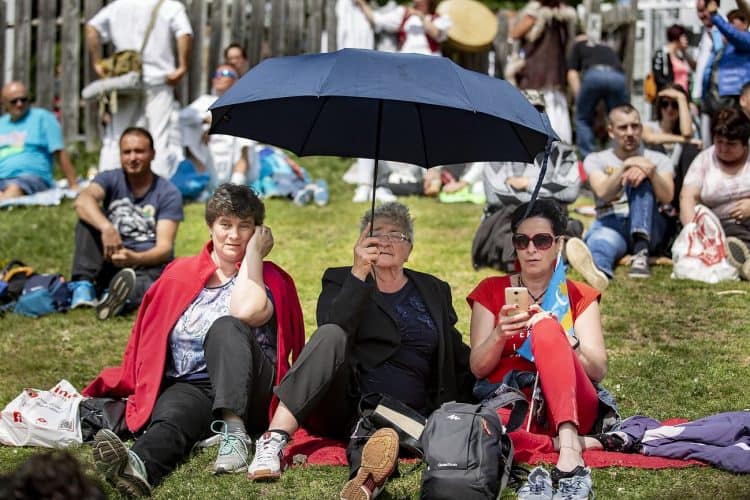 SUMULEU CIUC, ROMANIA - MAY 18: Hungarians from all over the world attending the early pilgrimage hold at Sumuleu Ciuc in Romania, as seen on May 18, 2018. Sumuleu Ciuc became a pilgrimage site in 1567, when Hungarian king John II Sigismund Zápolya wanted to convert the Székely population of the upper Csík to Protestantism. The Székelys refused to abandon the Catholic faith and resisted. A battle took place on a nearby field, on Saturday before Pentecost 1567, from which the Székelys emerged victorious. The monks saw this as a sign of the care of Virgin Mary, and since then, this event has been commemorated by a pilgrimage when the believers gather on Pentecost every year. Beside its religious importance, the pilgrimage has also become a community event demonstrating spiritual unity of Hungarian people living in and outside the historical region of Transylvania. Photography by Mugur Varzariu/Getty Images/Newsweek.