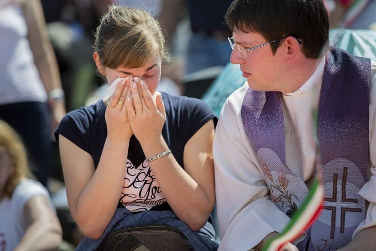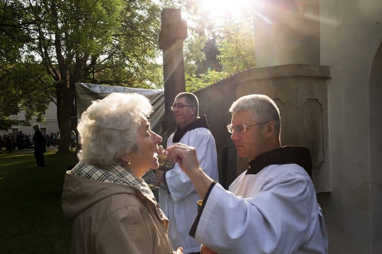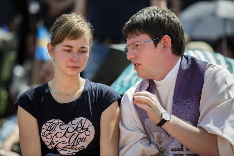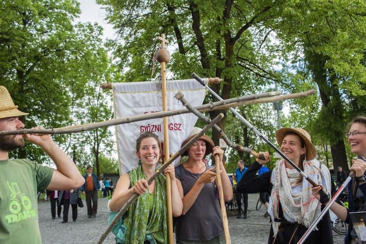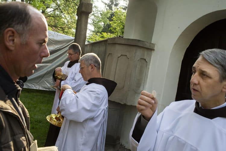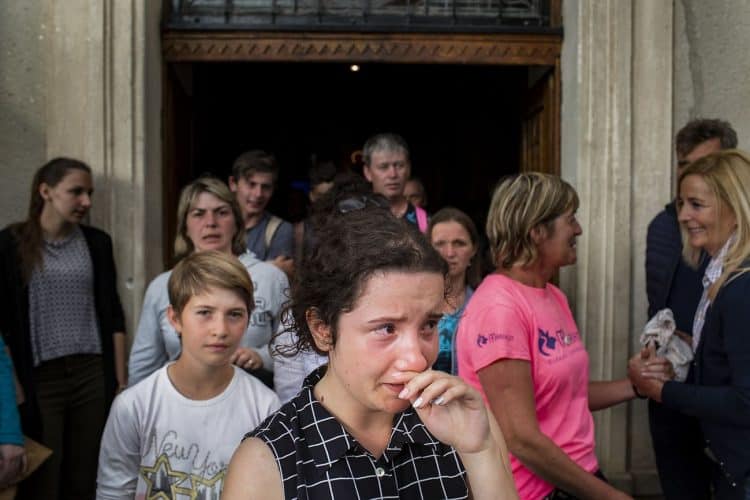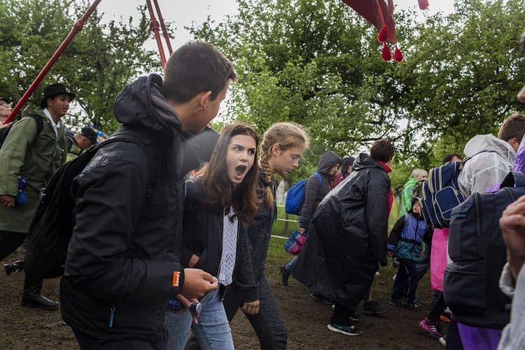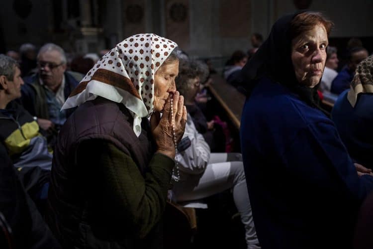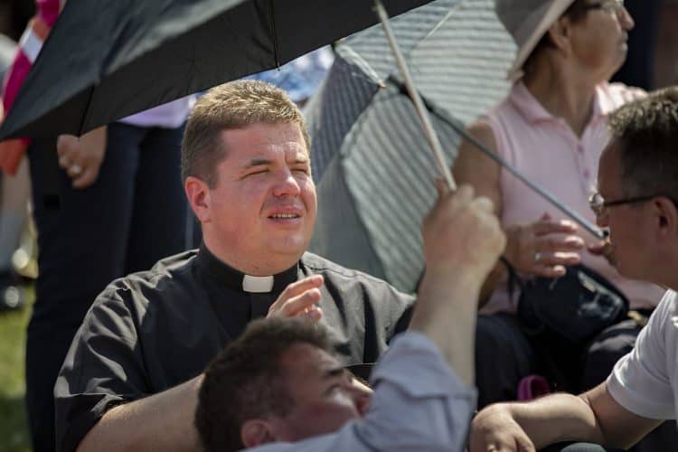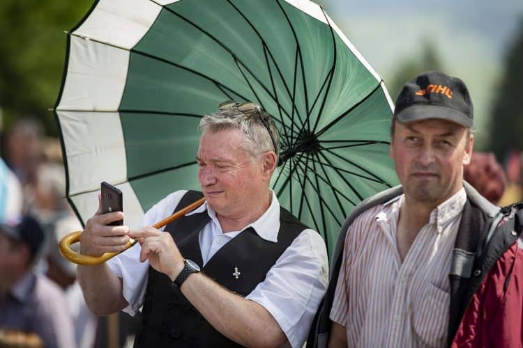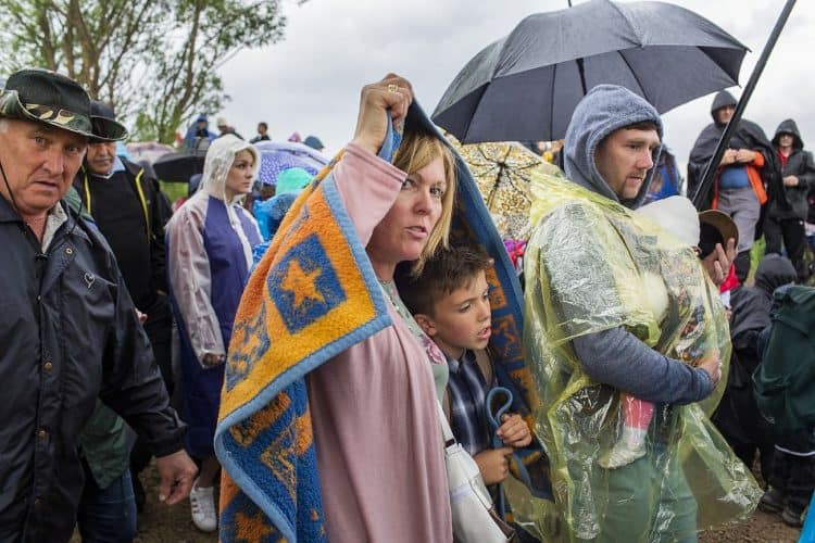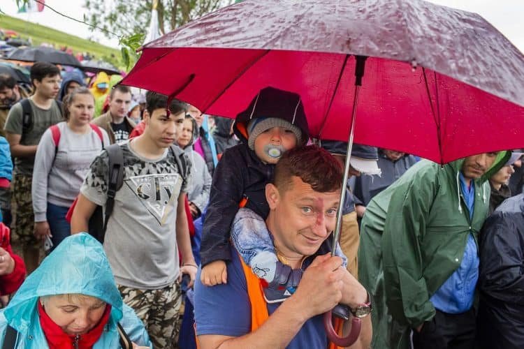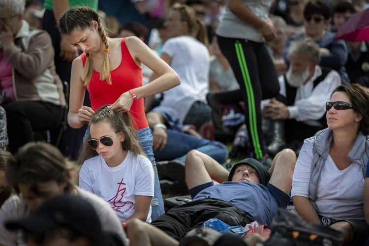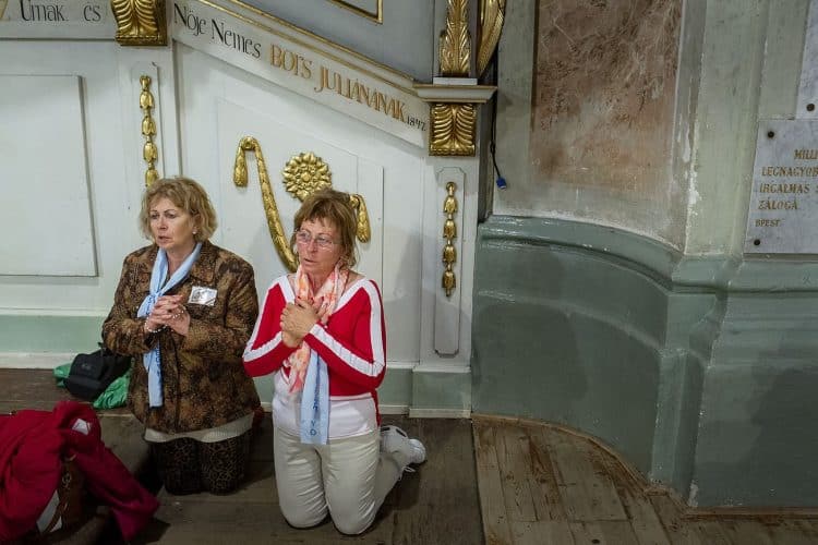 SUMULEU CIUC, ROMANIA - MAY 18: Hungarians from all over the world attending the early pilgrimage hold at Sumuleu Ciuc in Romania, as seen on May 18, 2018. Sumuleu Ciuc became a pilgrimage site in 1567, when Hungarian king John II Sigismund Zpolya wanted to convert the Szkely population of the upper Csk to Protestantism. The Szkelys refused to abandon the Catholic faith and resisted. A battle took place on a nearby field, on Saturday before Pentecost 1567, from which the Szkelys emerged victorious. The monks saw this as a sign of the care of Virgin Mary, and since then, this event has been commemorated by a pilgrimage when the believers gather on Pentecost every year. Beside its religious importance, the pilgrimage has also become a community event demonstrating spiritual unity of Hungarian people living in and outside the historical region of Transylvania. Photography by Mugur Varzariu/Getty Images/Newsweek.