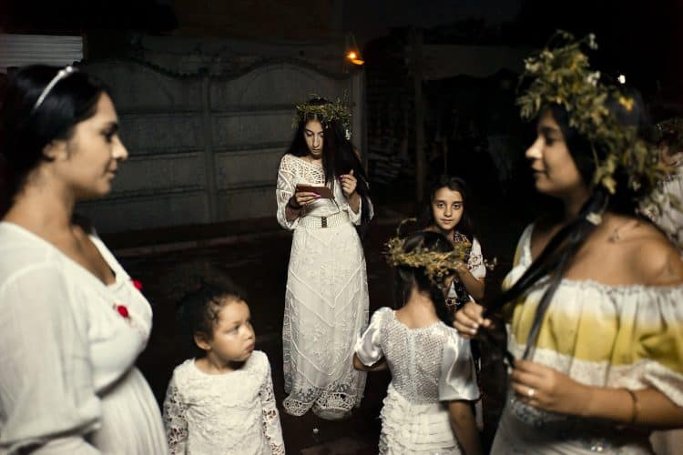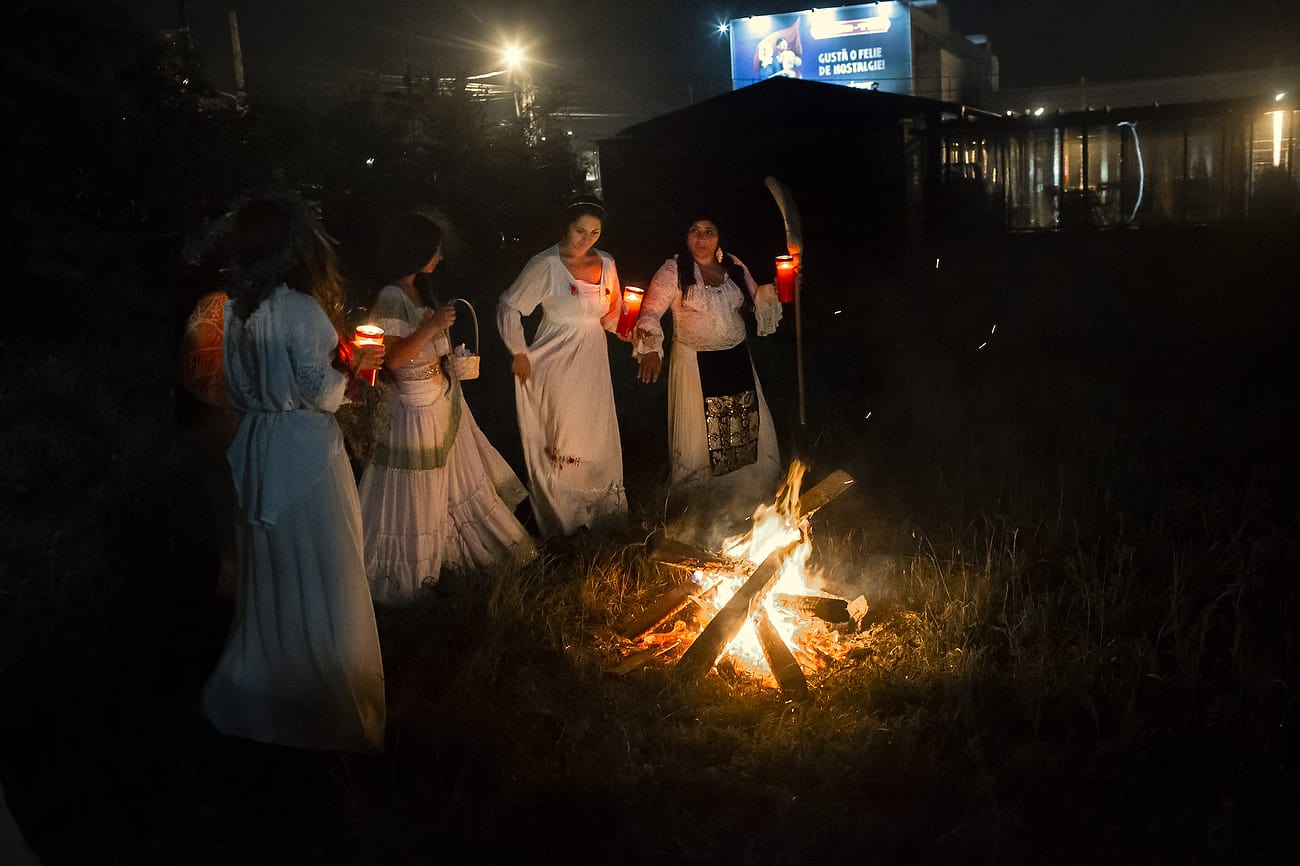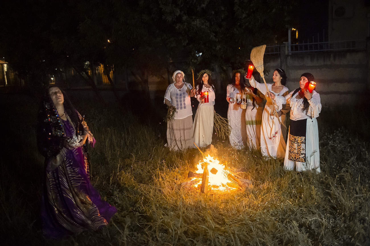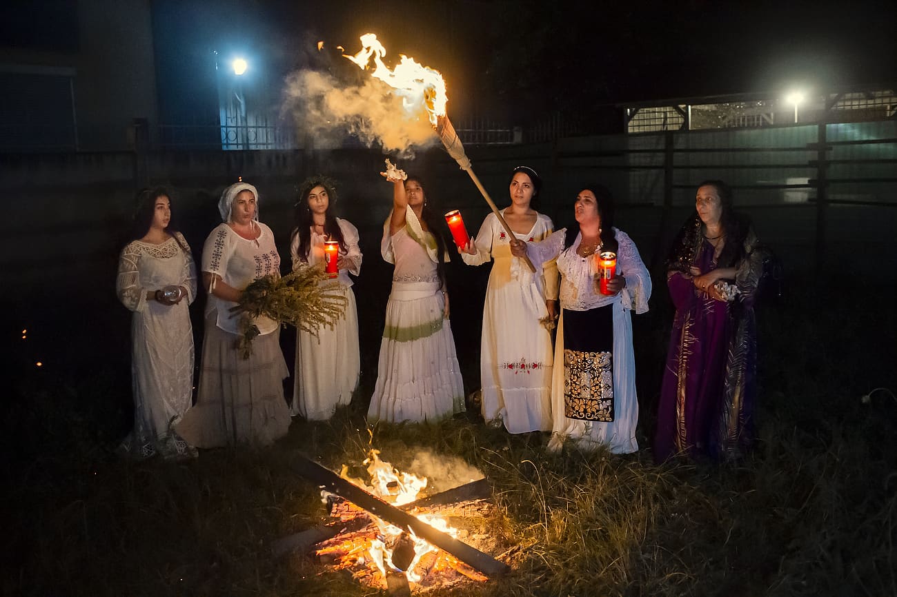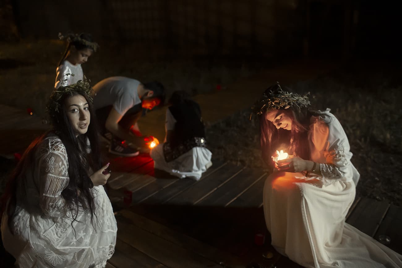 Using the flowers they picked during the day, the girls braid floral crowns which they wear upon returning to the village at nightfall. There they meet with their beloved and they dance around a bonfire.