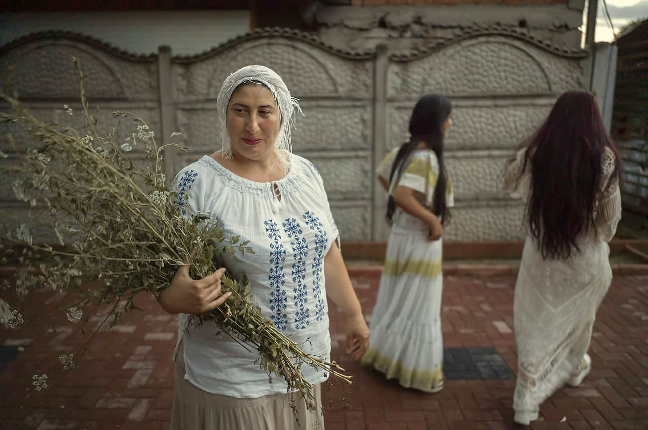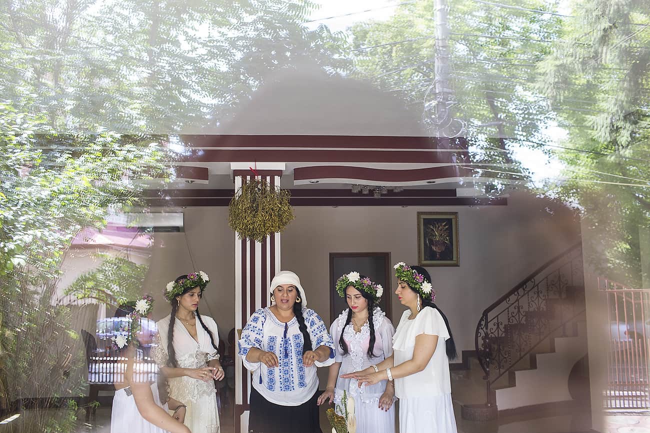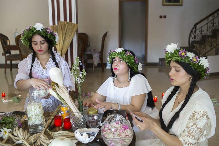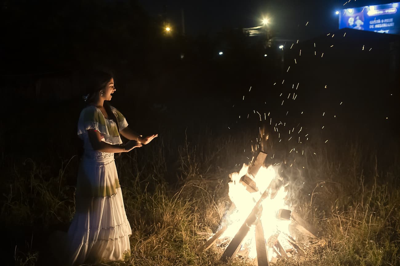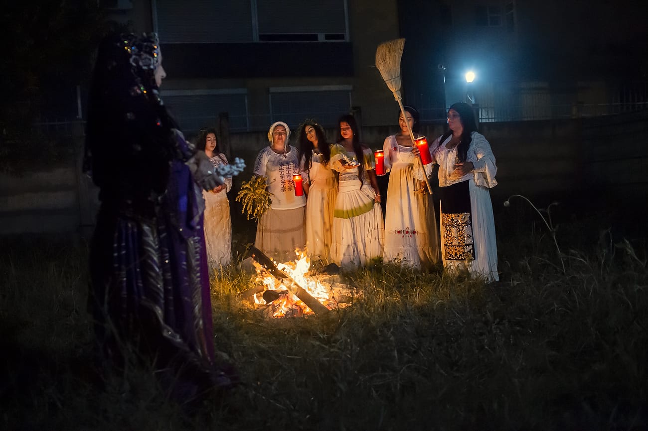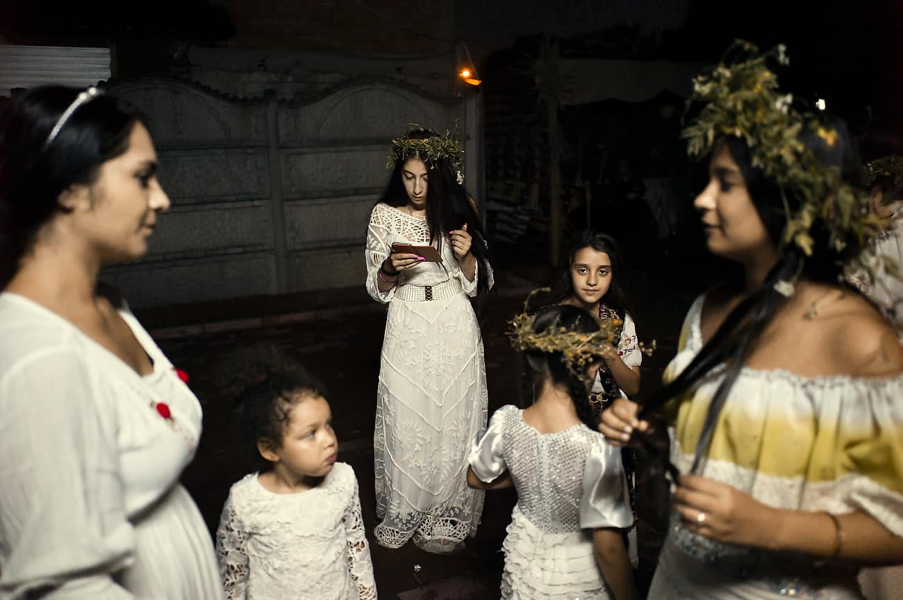 Using the flowers they picked during the day, the girls braid floral crowns which they wear upon returning to the village at nightfall. There they meet with their beloved and they dance around a bonfire.