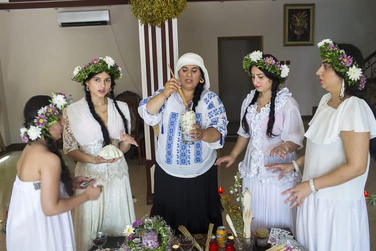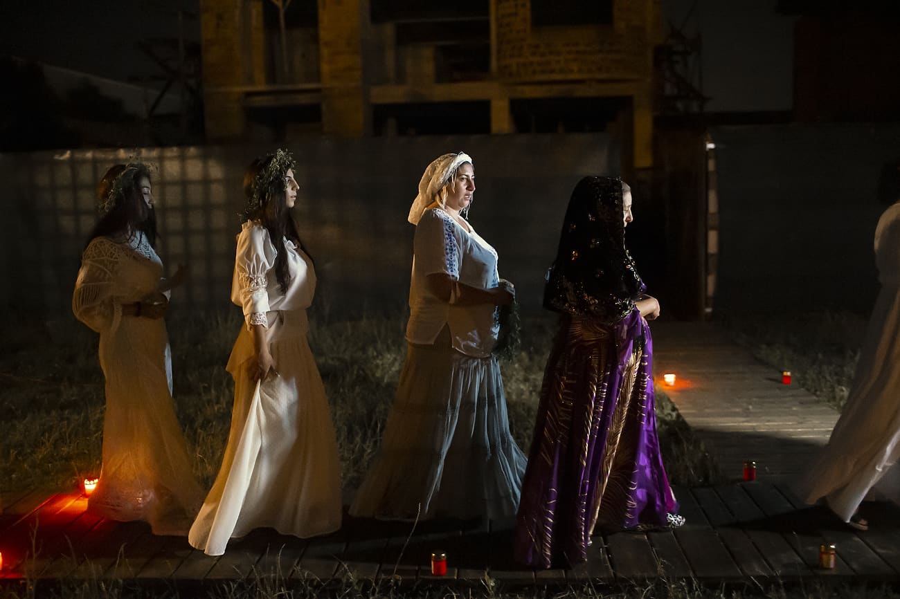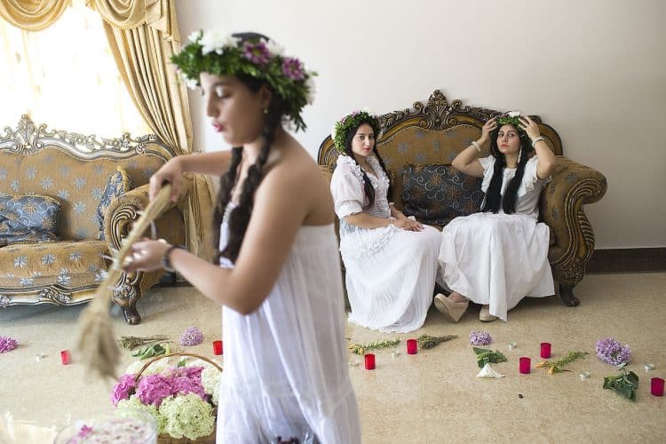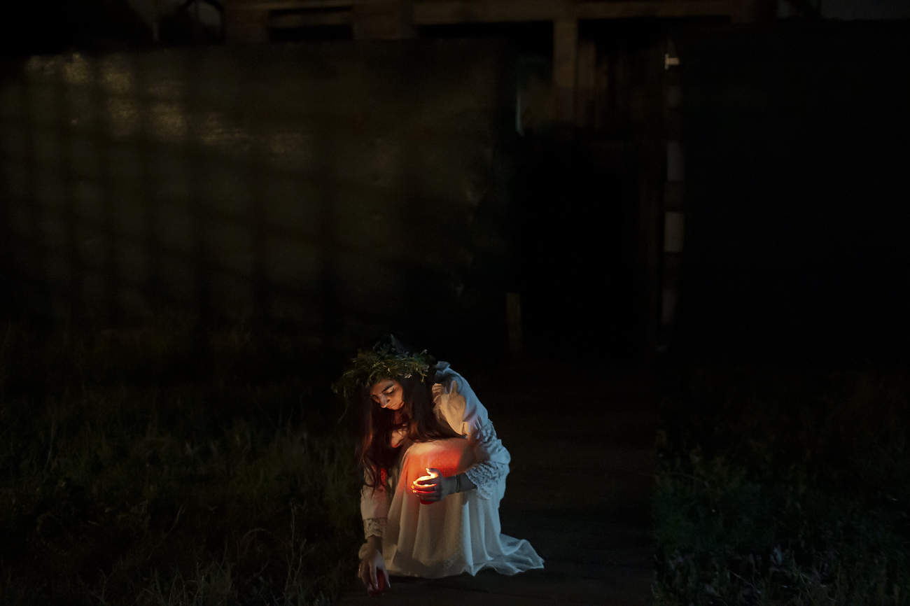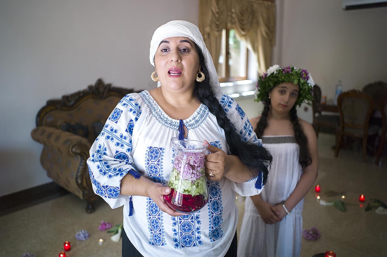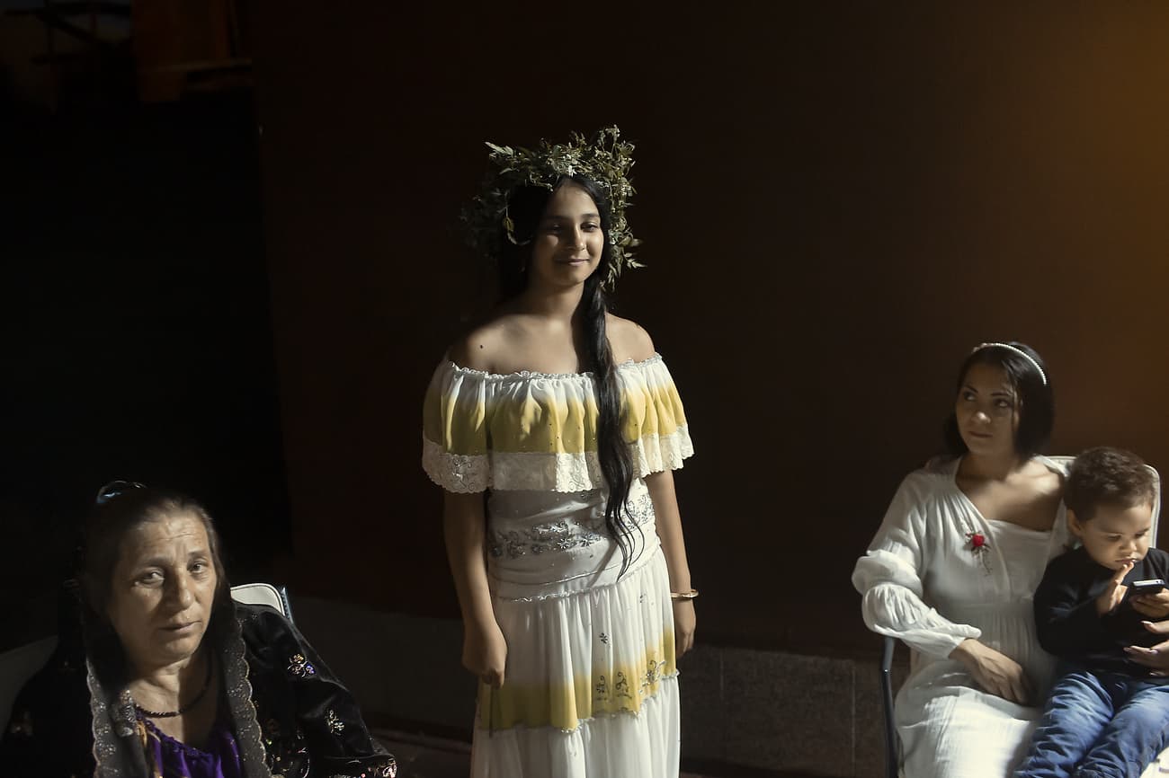 Using the flowers they picked during the day, the girls braid floral crowns which they wear upon returning to the village at nightfall. There they meet with their beloved and they dance around a bonfire.