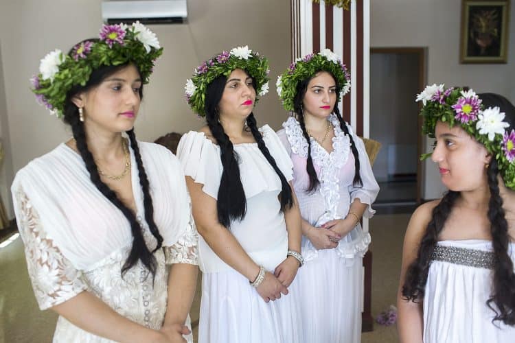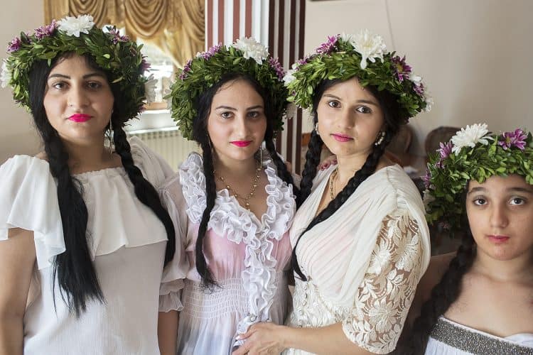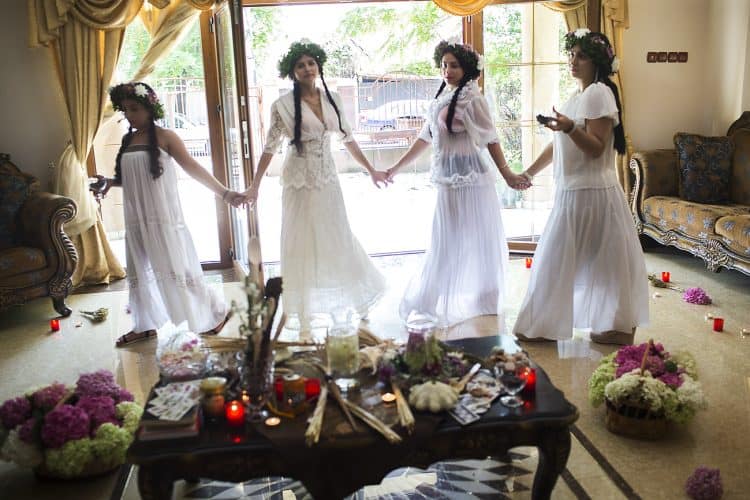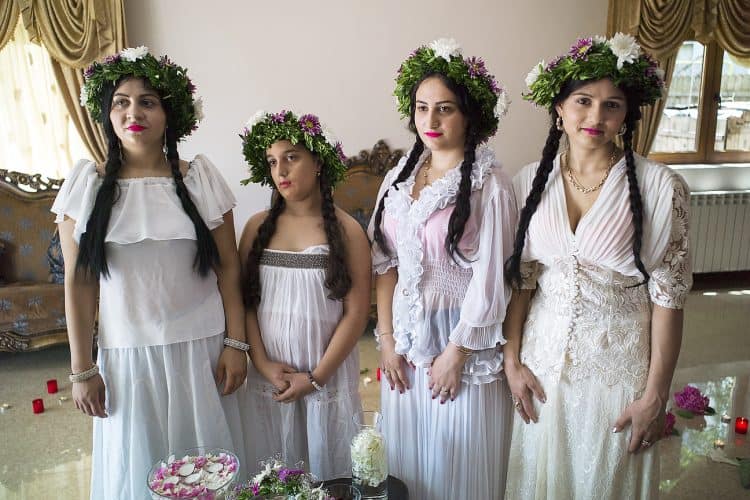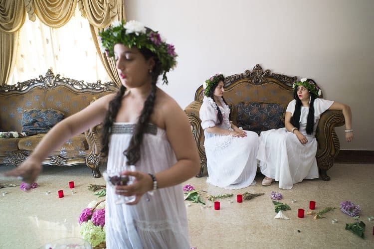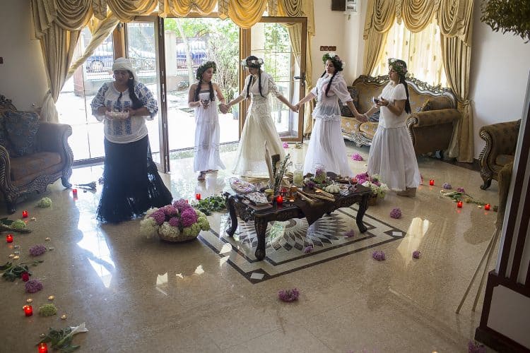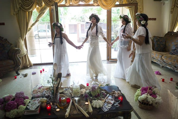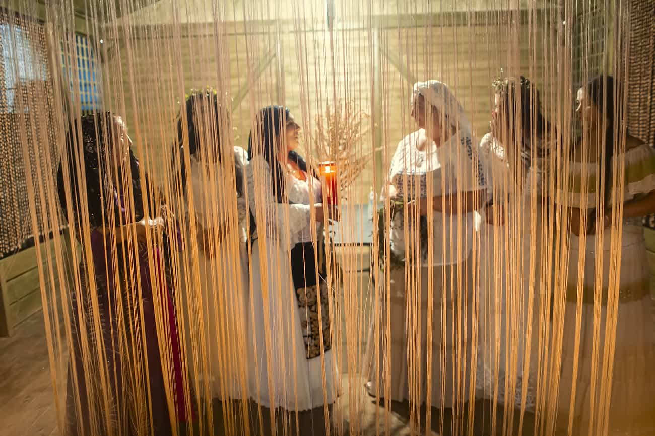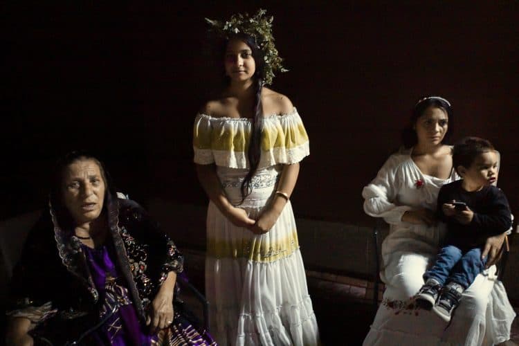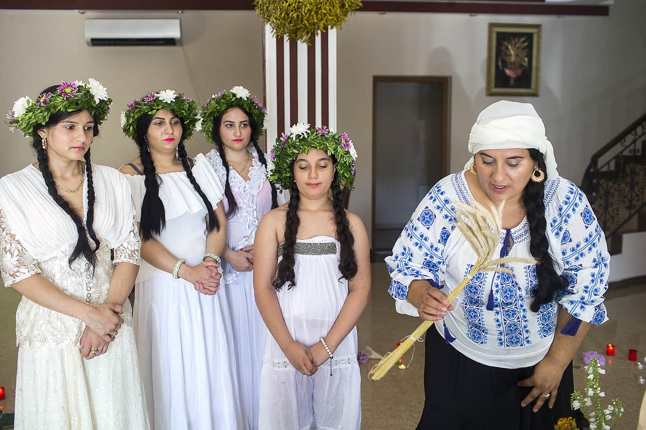 Using the flowers they picked during the day, the girls braid floral crowns which they wear upon returning to the village at nightfall. There they meet with their beloved and they dance around a bonfire.
