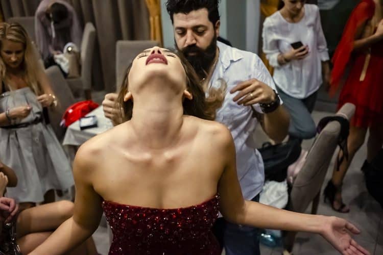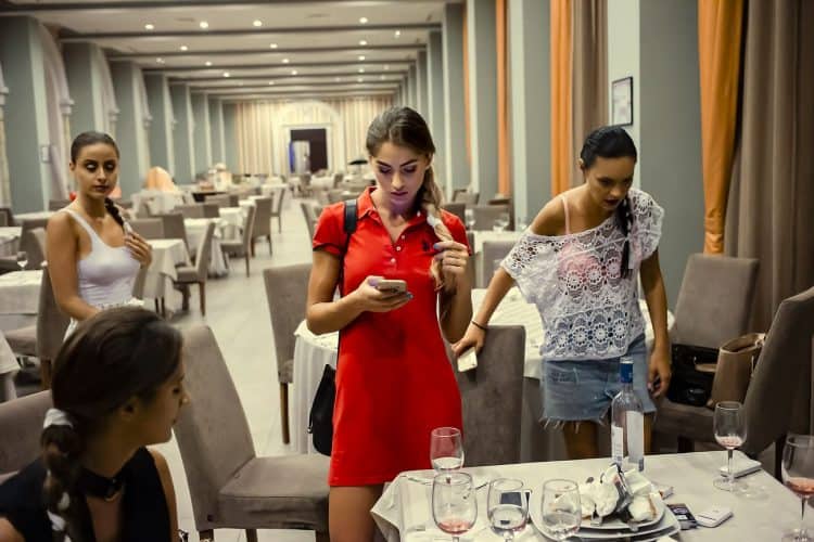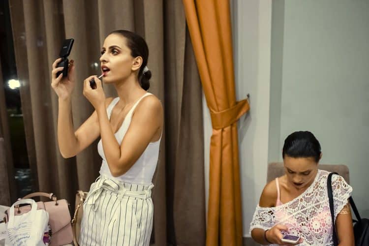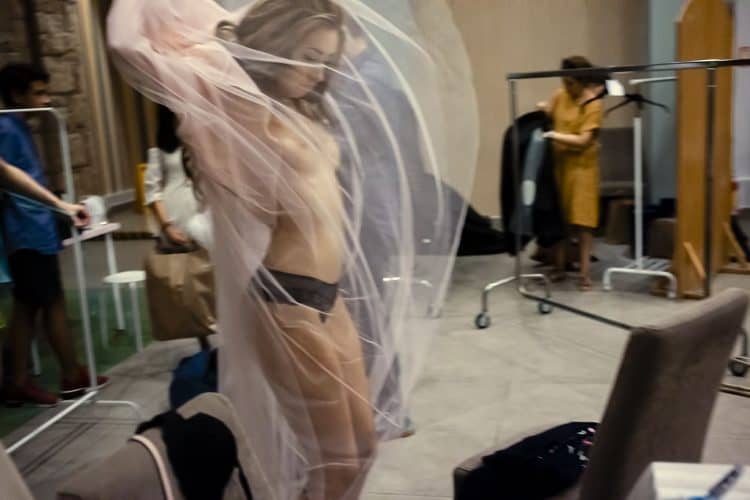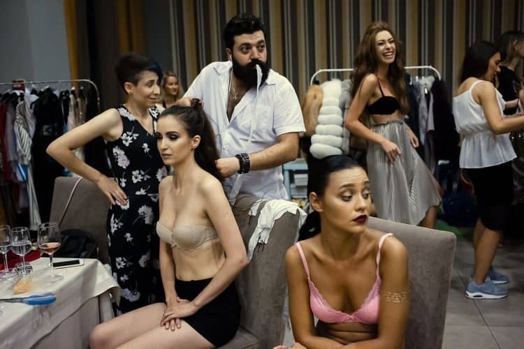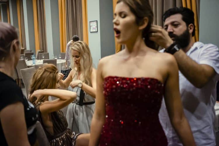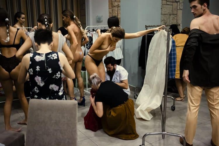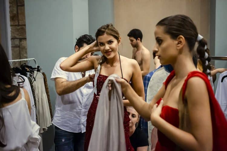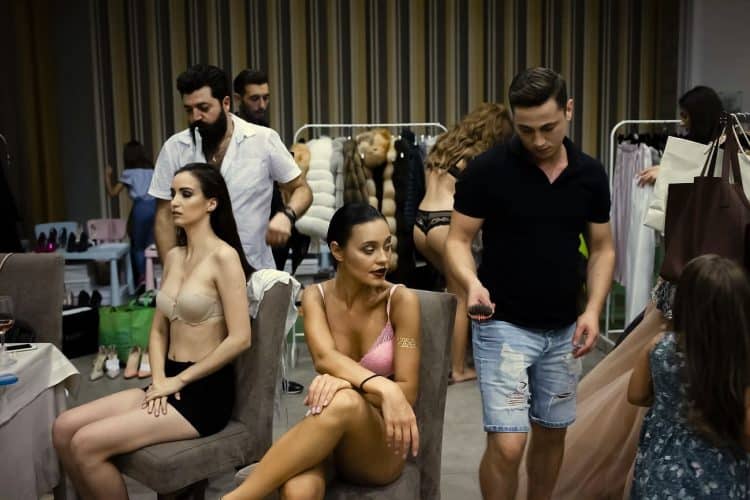 MAMAIA, ROMANIA - AUG11: Models backstage at a fashion presentation at Yaki hotel in Mamaia on August 11, 2017. © Mugur Varzariu