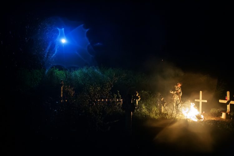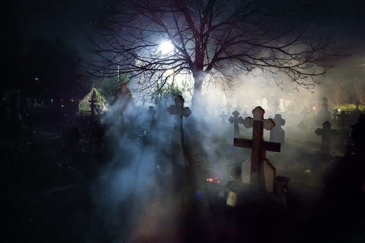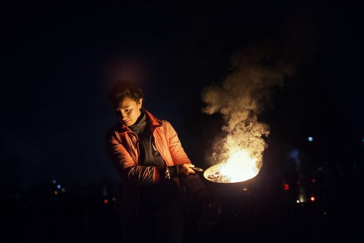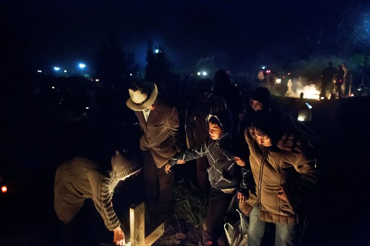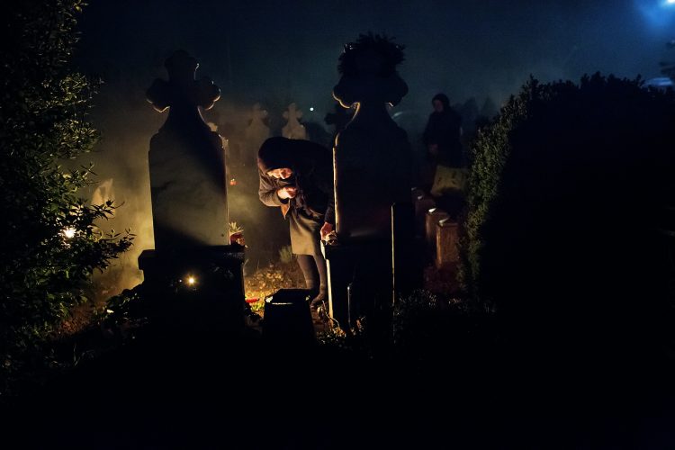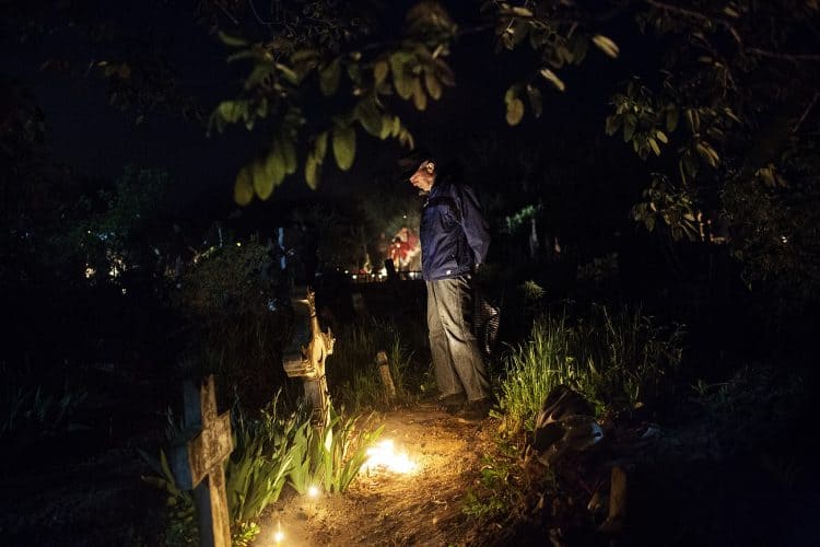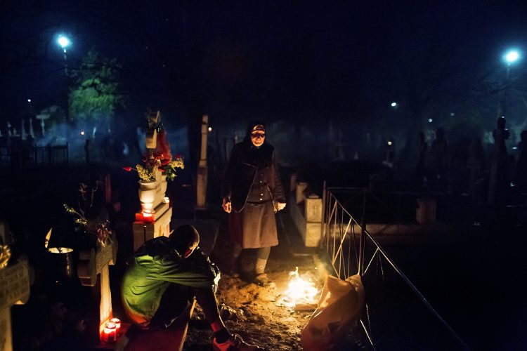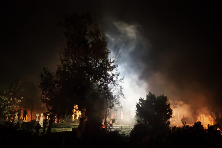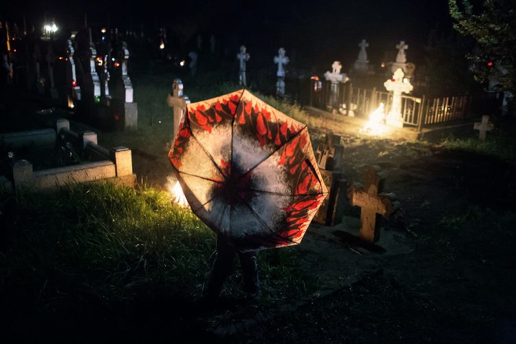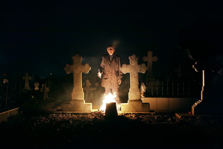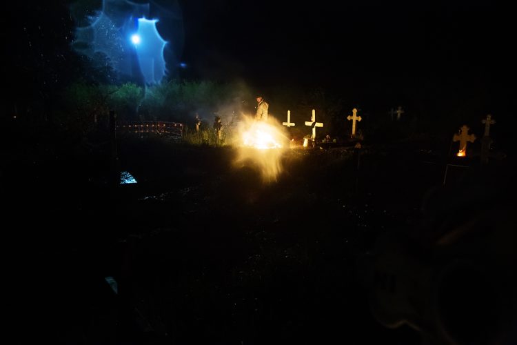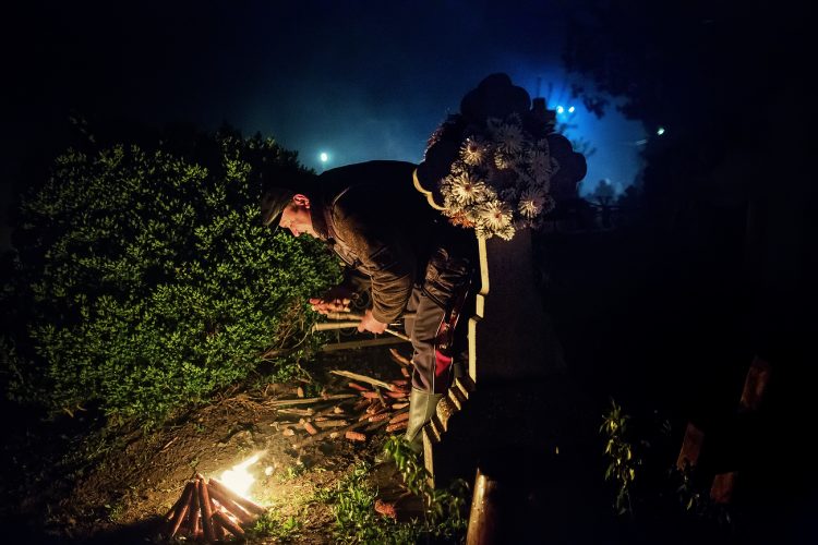 Romanians visit a cemetery during a Palm Sunday memorial for the departed in Herasti, southern Romania, late Saturday, April 23, 2016. Orthodox believers in the village gather at midnight, light fires at the graves and share food in memory of their dead relatives.