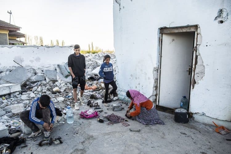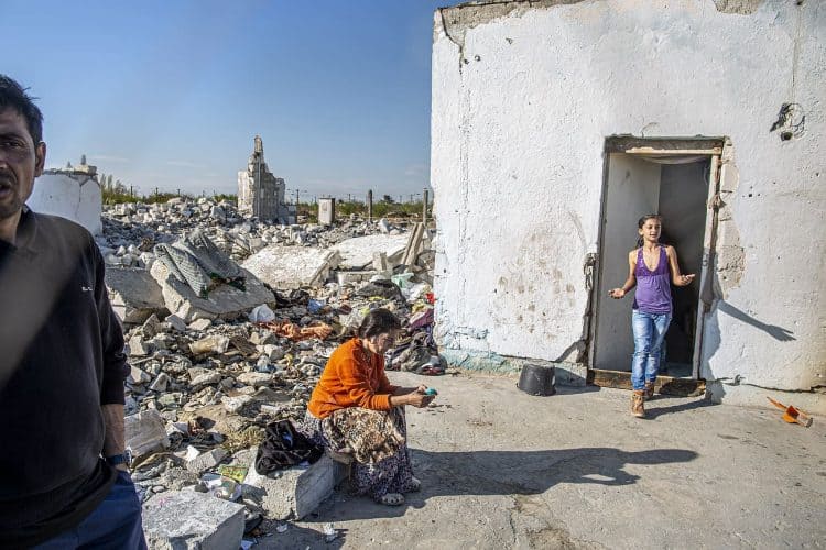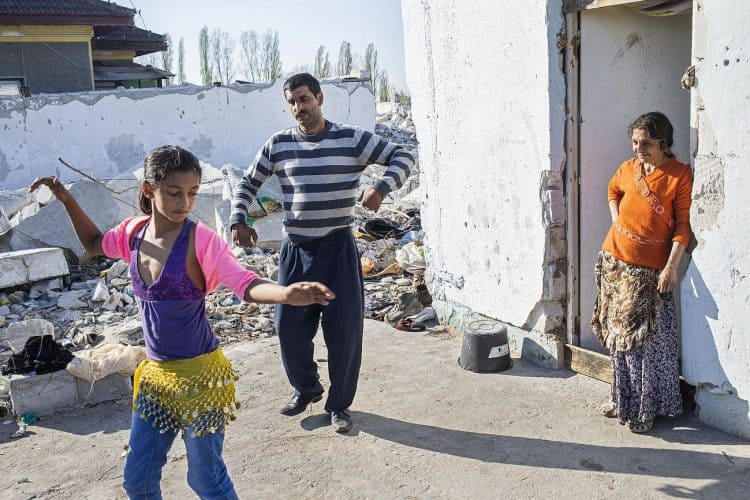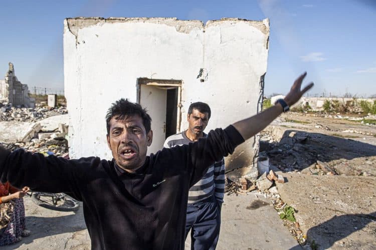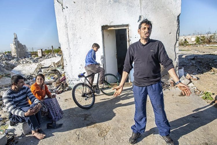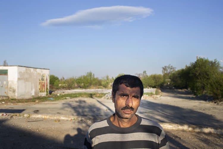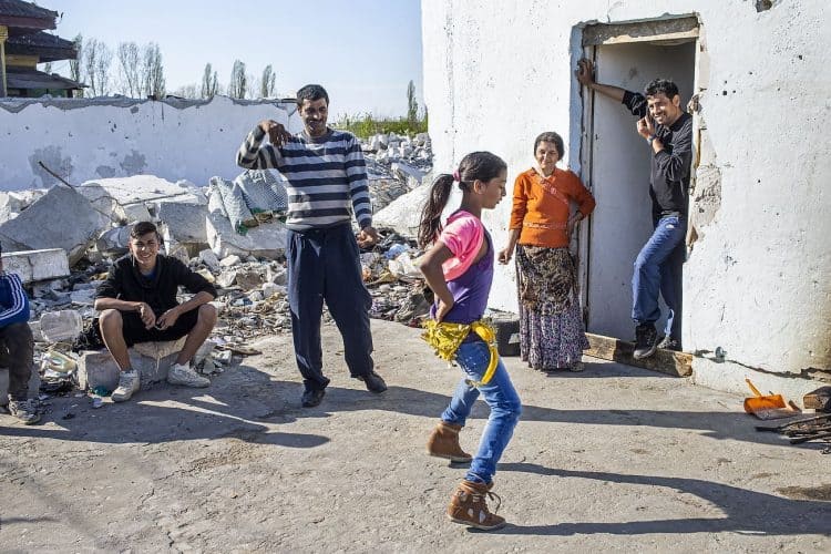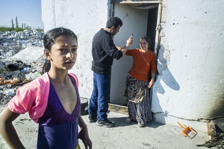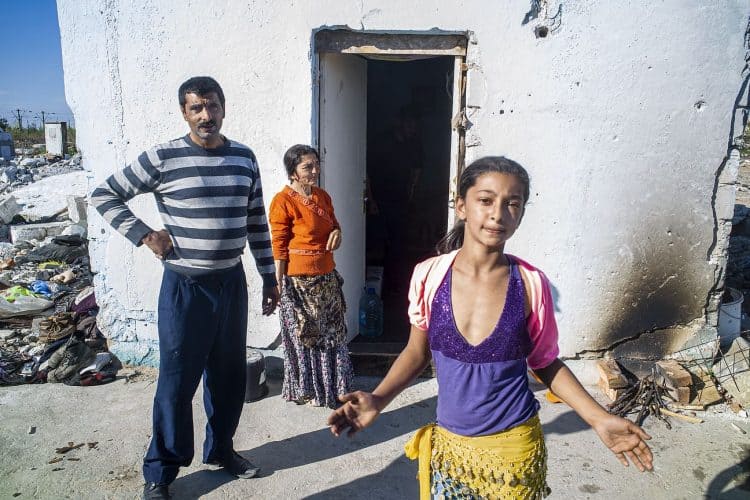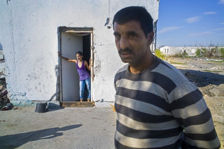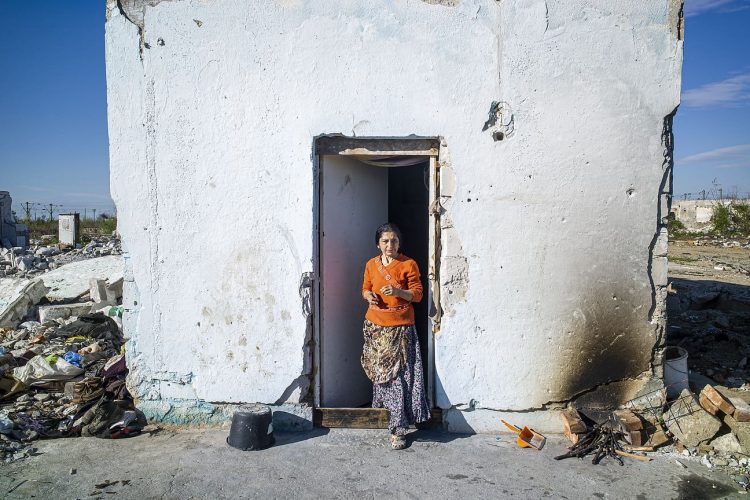 BUCHAREST, ROMANIA - APR 15: Raj a Roma of Romanian origins and his family living in an abandoned building of a former industrial park, as seen just across from the Roma Museum in Bucharest on April 15, 2015. Ironically, the Roma Museum is on the outskirts of Bucharest and less than a kilometer away from the garbage dumpster Rudeni. Photography by Mugur Varzariu/Getty Images/Newsweek.