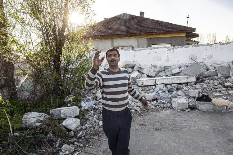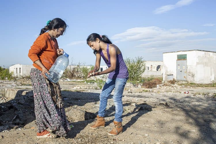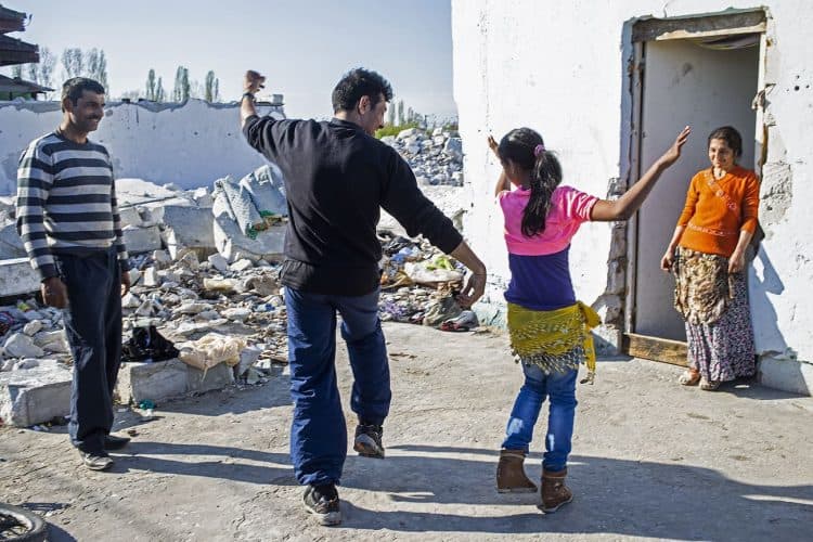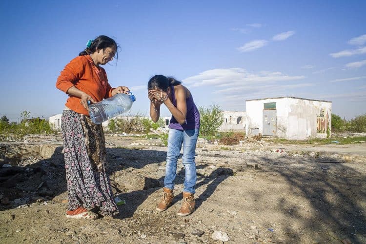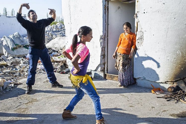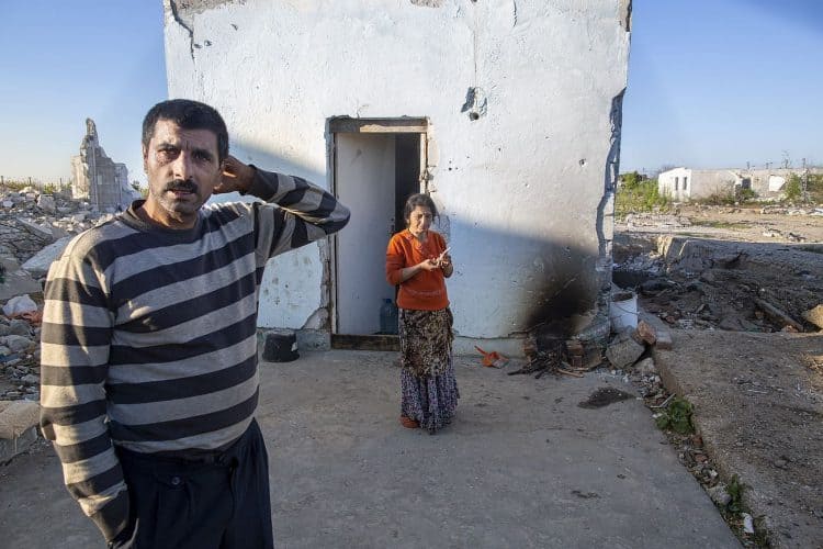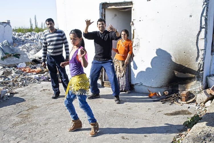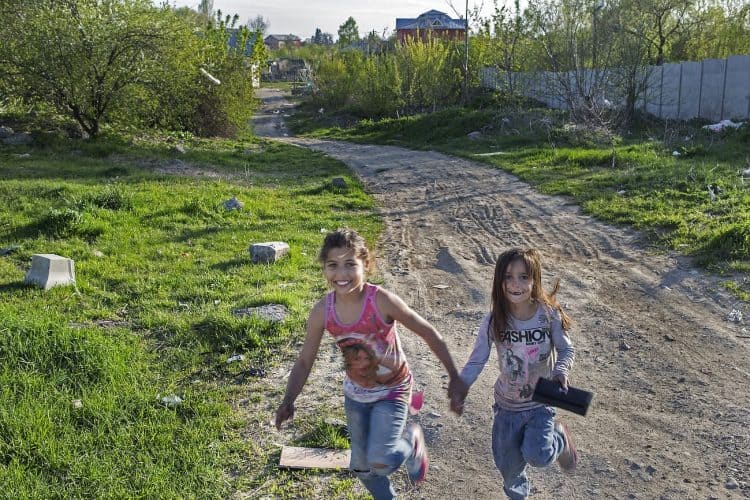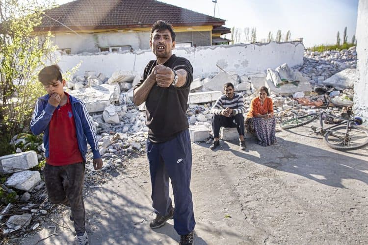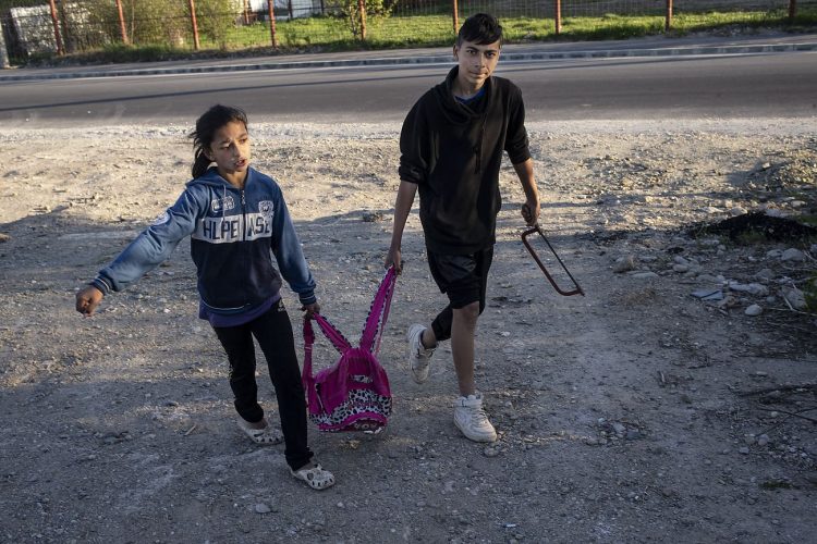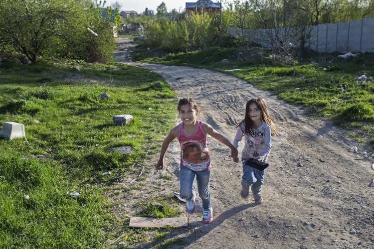 BUCHAREST, ROMANIA - APR 15: Raj a Roma of Romanian origins and his family living in an abandoned building of a former industrial park, as seen just across from the Roma Museum in Bucharest on April 15, 2015. Ironically, the Roma Museum is on the outskirts of Bucharest and less than a kilometer away from the garbage dumpster Rudeni. Photography by Mugur Varzariu/Getty Images/Newsweek.