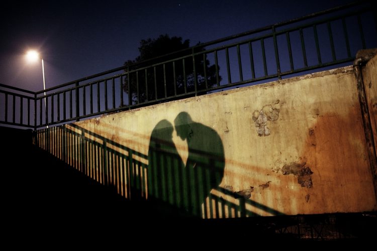 Silhouettes of two egyptian lovers, as seen in Tahrir Square, on April 15, 2011.