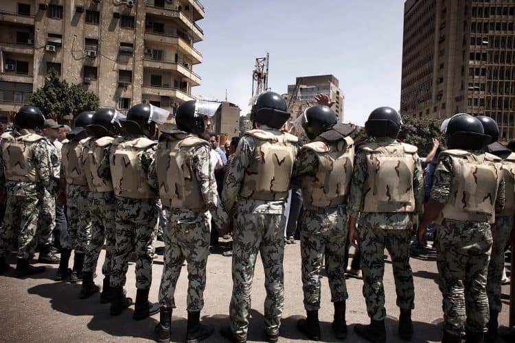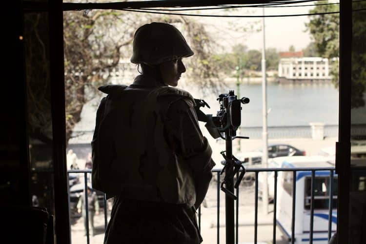 Soldier guarding the Egyptian National TV station as seen on April 14, 2011.