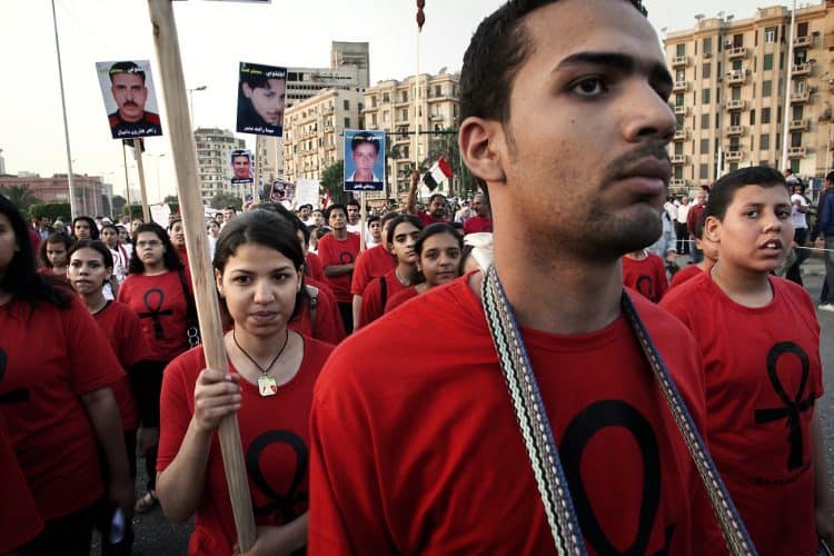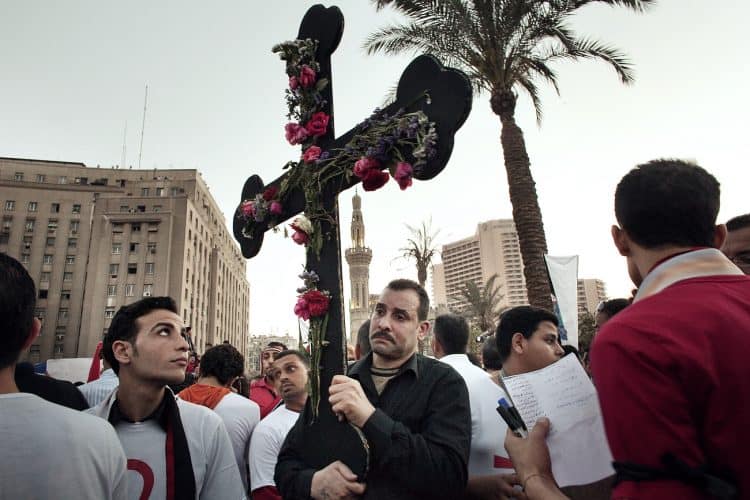 Christian protesters as seen in Tahrir Square, on April 15, 2011.
