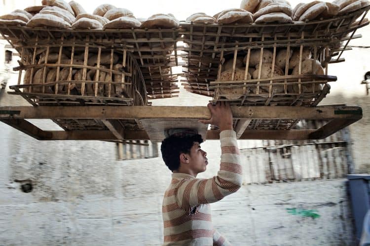 Man delivering bread on his bike as seen in Cairo, April 14, 2011.