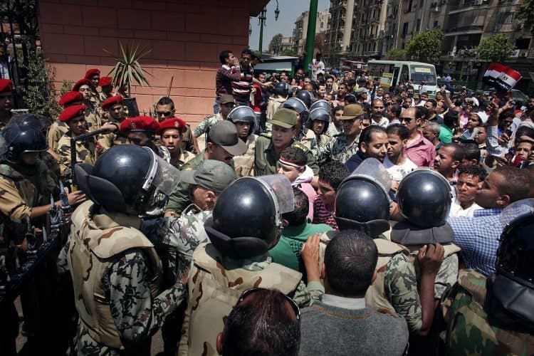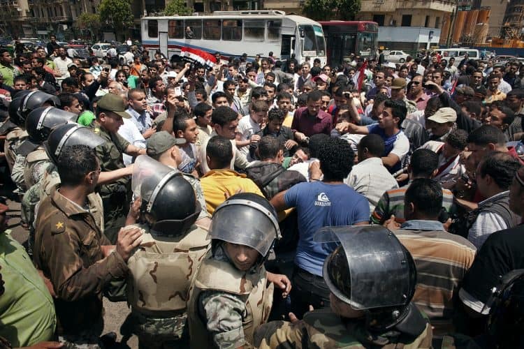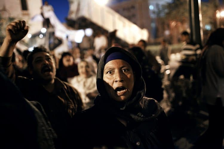 Protesters shout slogans, as seen in Tahrir Square, Cairo, on April 15, 2011.