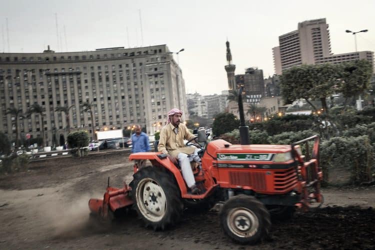 Workers replanting flowers in Tahrir Square in an official attempt to return to normality and discourage people from storming the square each friday, as seen on April 13, 2011.