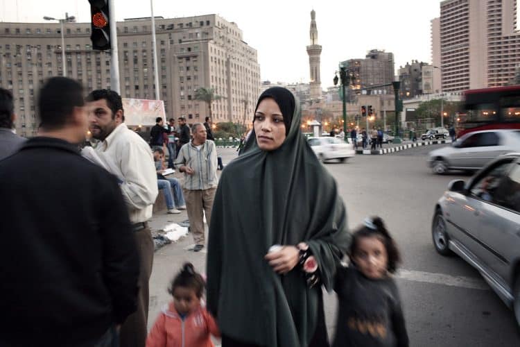 Woman walls by, as seen in Tahrir Square on April 13, 2012