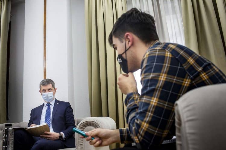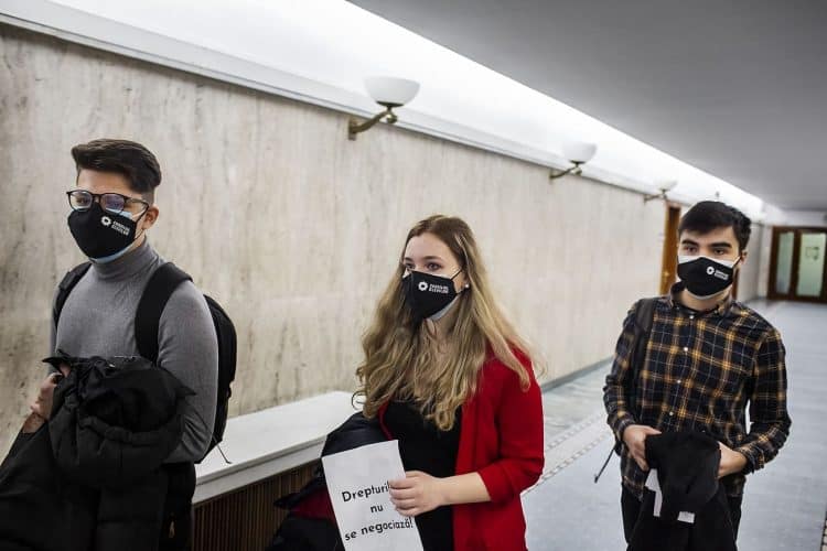 As I started to take pictures the students rose to the occasion and protested with renewed vigour at the arrival of a photographer. Call it happenstance or serendipity, but the delay in their departure caused by my arrival led to an invite they otherwise would have missed. A delegation of four students was invited inside the government headquarters for an informal meeting with Deputy Prime Minister Dan Barna.