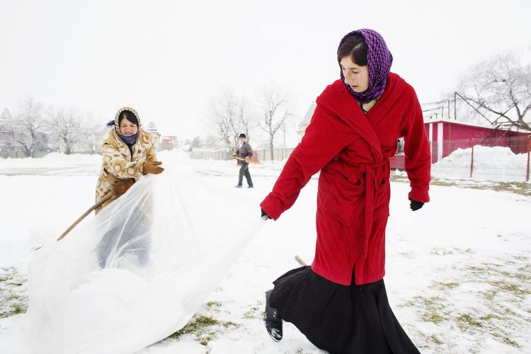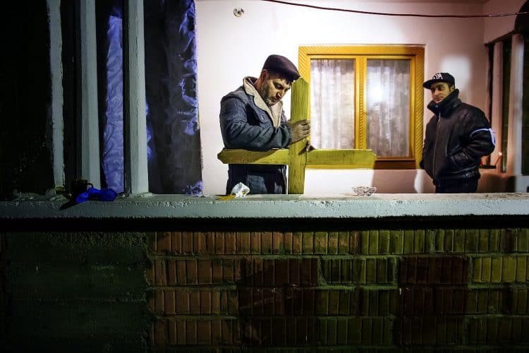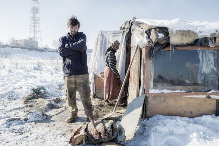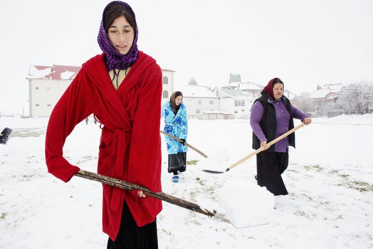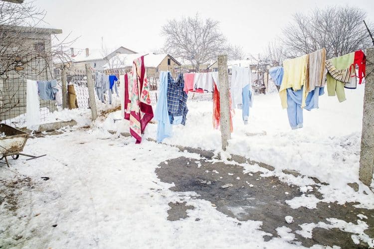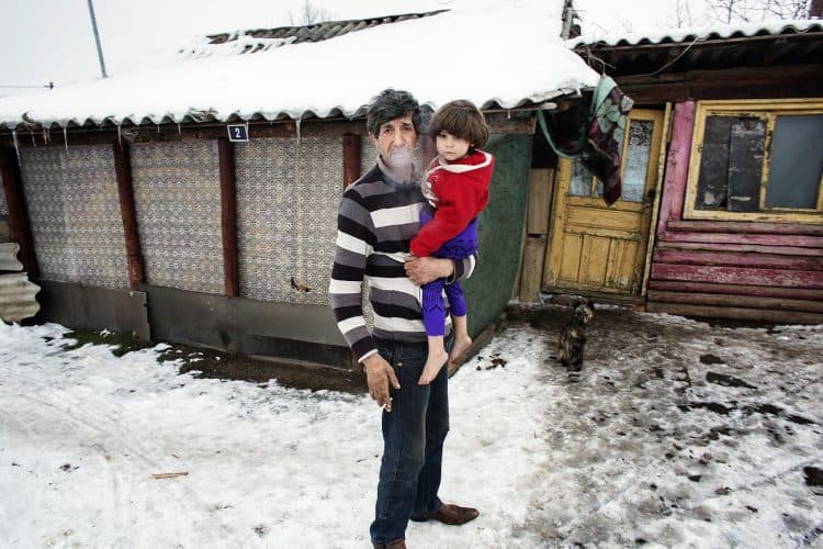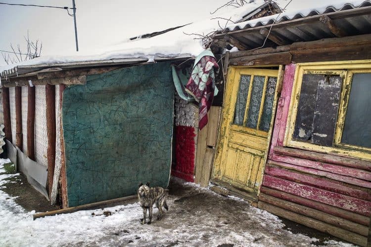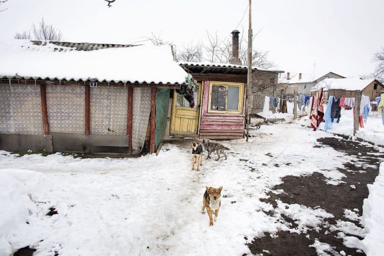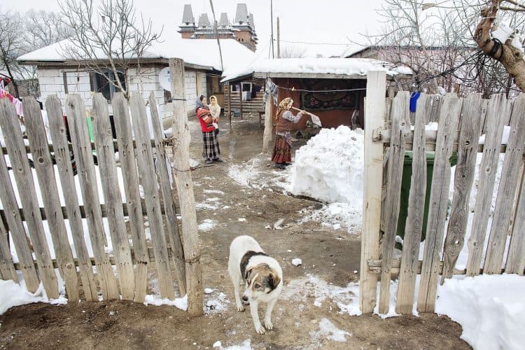 Roma people in Buzesti on February 6, 2014.