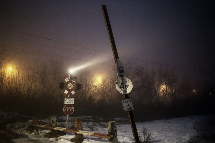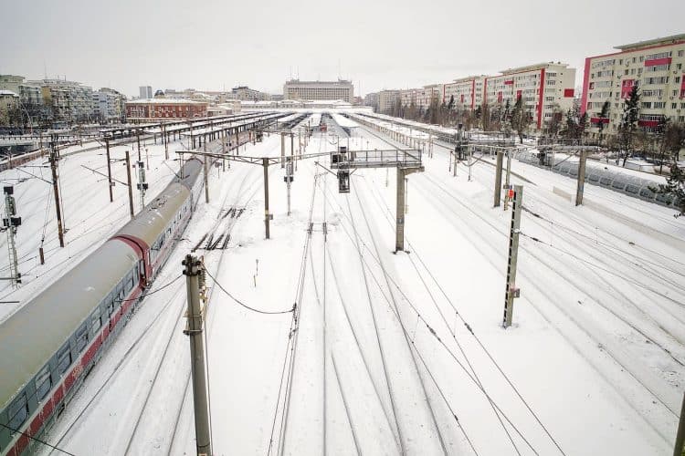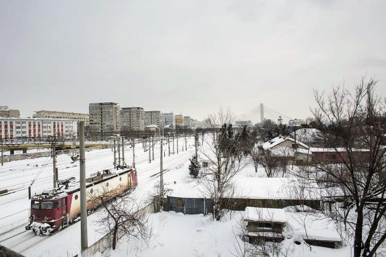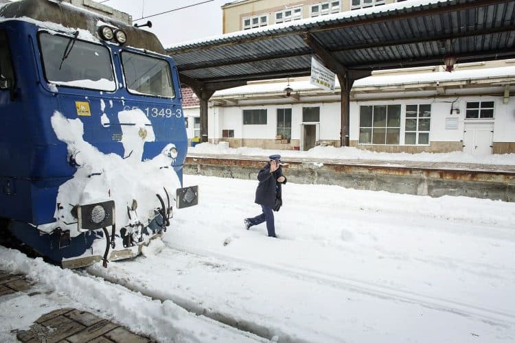 Train pulling into Gara de Nord station, in Bucharest on January 30, 2014. Weather forecasters issued a code red severe weather warning as a second wave of blizzards affects the southeastern regions of Romania disrupting road and rail traffic.