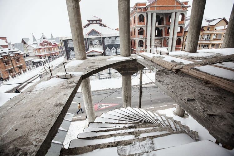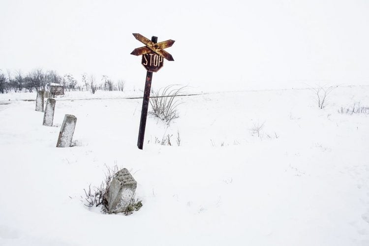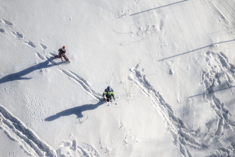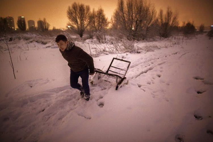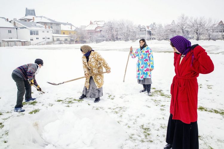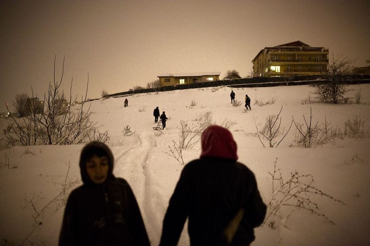 Kids playing in the snow on the edge of Vacaresti pit, as seen in Bucharest on December 31, 2014. During Ceausescu regime the Vacaresti area, which was accommodating a 17th century monastery and a district of houses with big gardens, was demolished in order to build a lake. Since the works were abandoned in Õ88 nothing has been done here. In the presence of surfaced underground springs and plenty of time, mother nature has shape shifted the pit into a green oasis with delta like particularities where a variety of flora and fauna have blossomed. Starting 15 years ago many poor families, mainly Roma, have found shelter in the pit since the land property is still in dispute between the state and the former owners of the demolished houses. They all live in improvised shacks made from scraps they gather in the neighborhood. Those people are most resourceful when it comes to improvisation of what actually constitutes their life.