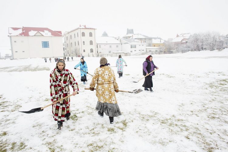 Roma people doing community work to secure social benefits eligibility, in Buzesti on February 6, 2014.