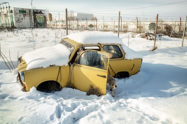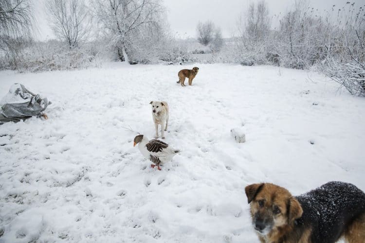 Stray dogs as seen inside Vacaresti pit in Bucharest on December 29, 2014. During Ceausescu regime the Vacaresti area, which was accommodating a 17th century monastery and a district of houses with big gardens, was demolished in order to build a lake. Since the works were abandoned in Õ88 nothing has been done here. In the presence of surfaced underground springs and plenty of time, mother nature has shape shifted the pit into a green oasis with delta like particularities where a variety of flora and fauna have blossomed. Starting 15 years ago many poor families, mainly Roma, have found shelter in the pit since the land property is still in dispute between the state and the former owners of the demolished houses. They all live in improvised shacks made from scraps they gather in the neighborhood. Those people are most resourceful when it comes to improvisation of what actually constitutes their life.