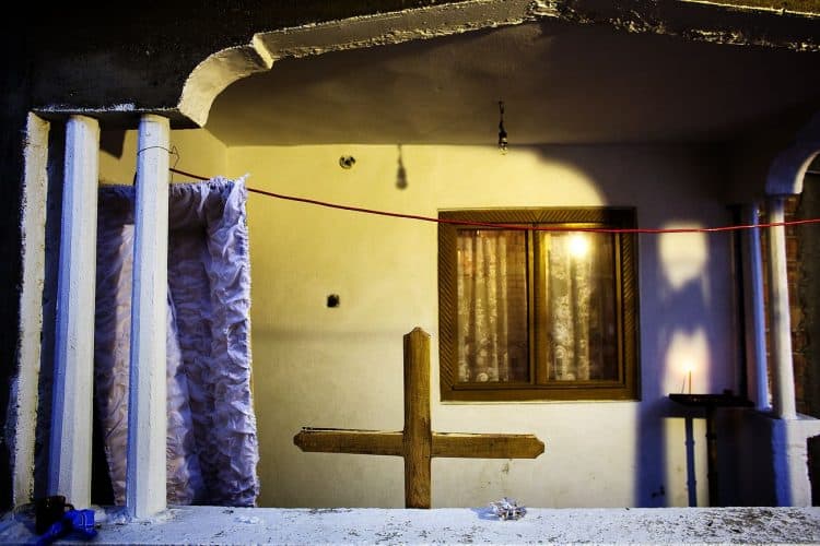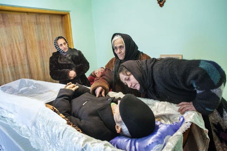 Roma people attending a funeral in Buzesti on February 6, 2014.