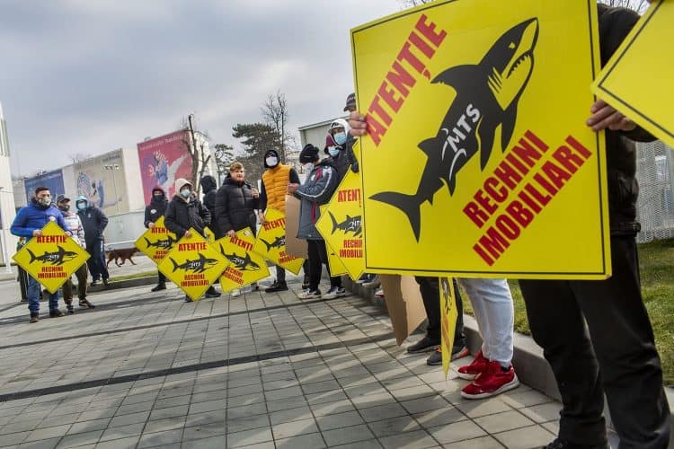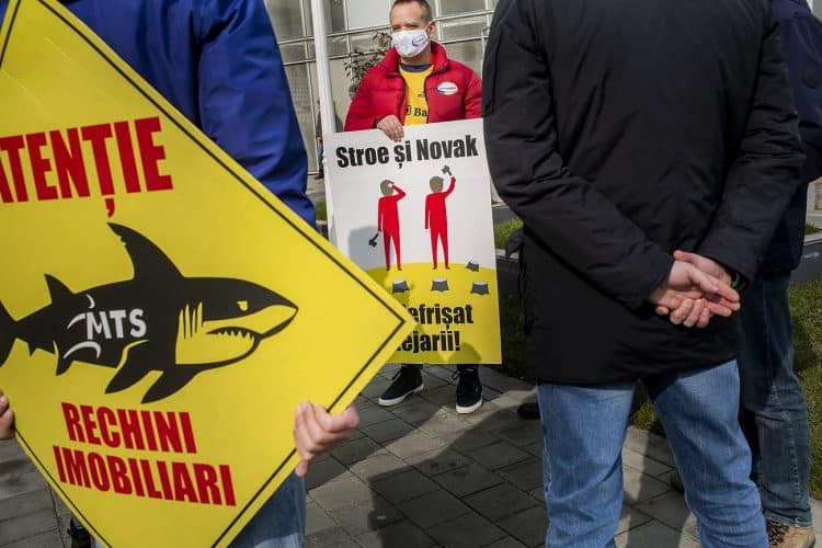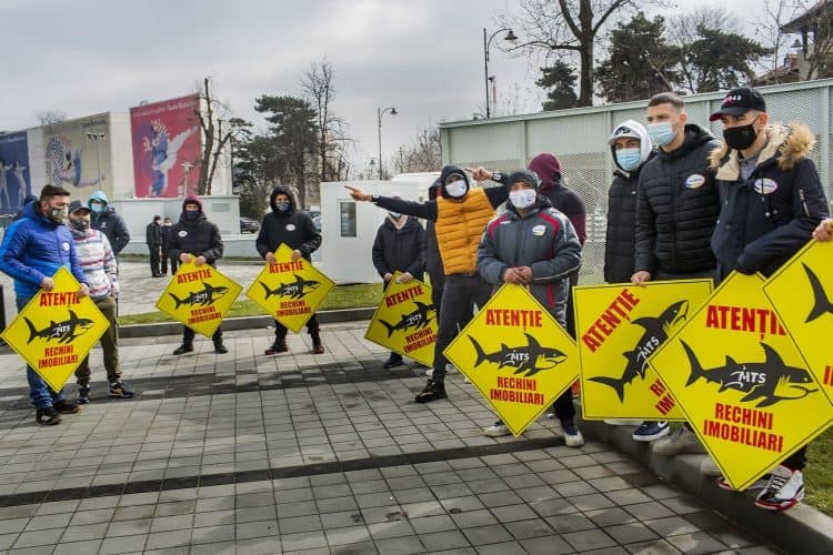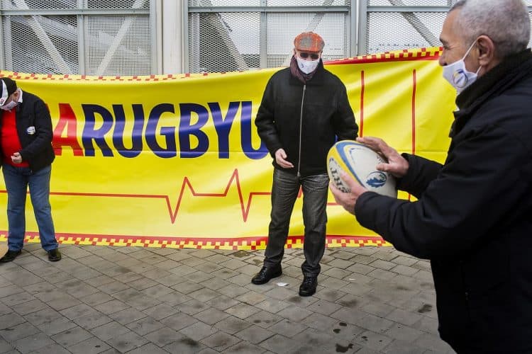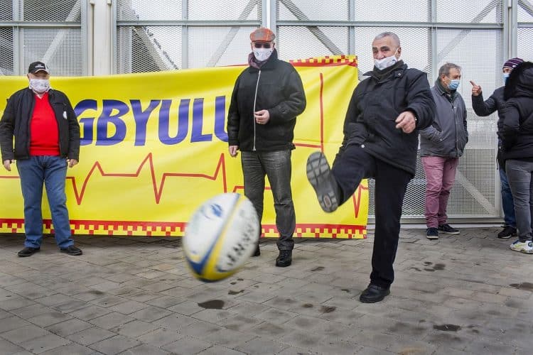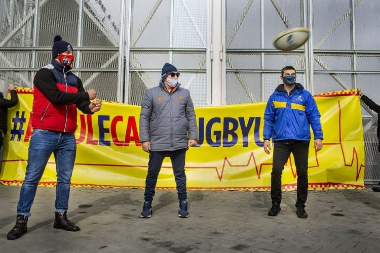 BUCHAREST, ROMANIA - FEB 21: Former and current rugby players protesting the Ministry of Sport and Youth decision to take over the administration of the Arcul de Triumf Stadium, in Bucharest on February 21, 2021. Mugur VARZARIU/Getty Images/Newsweek.