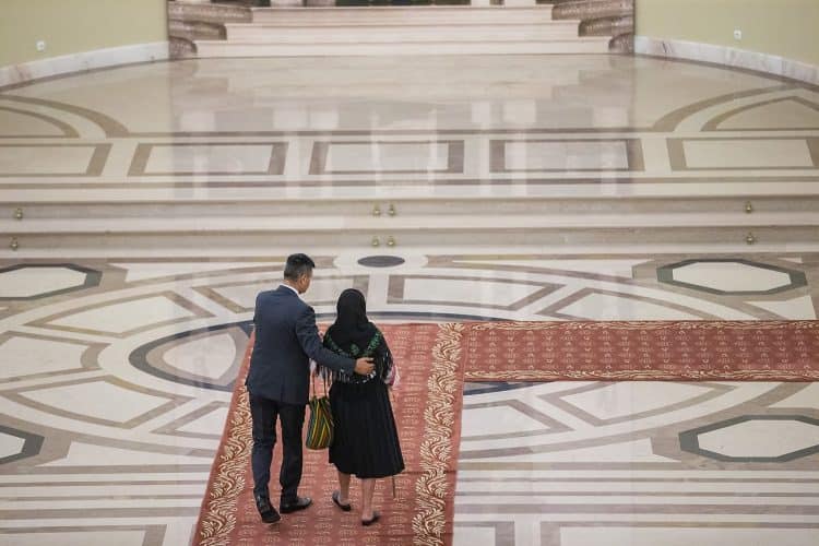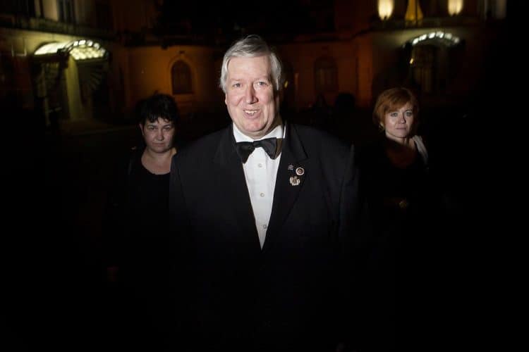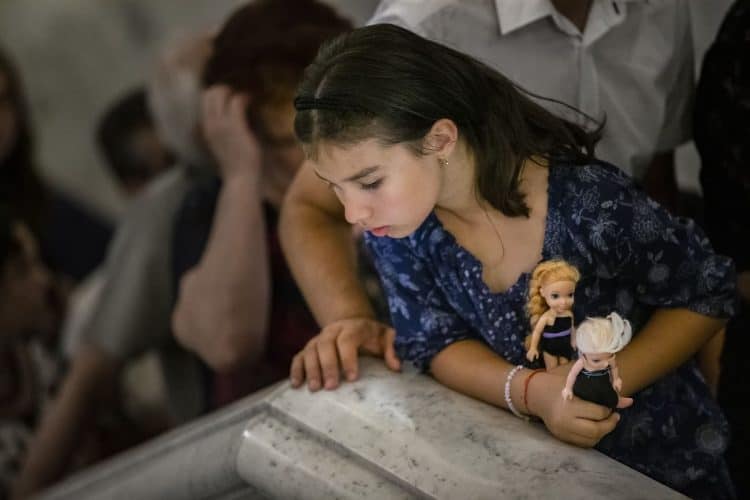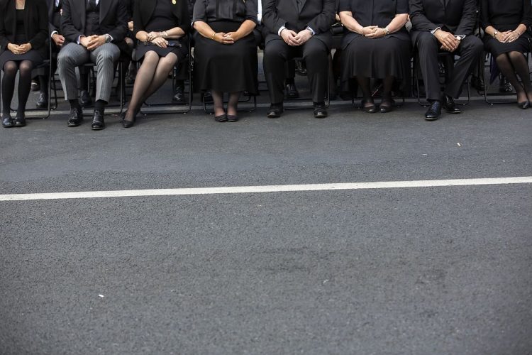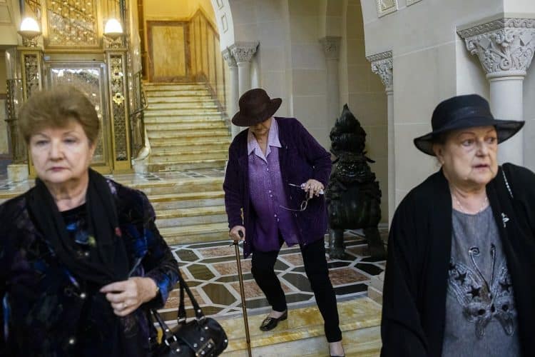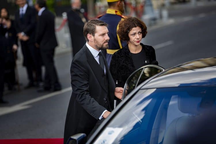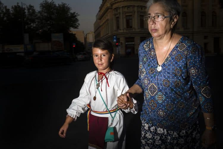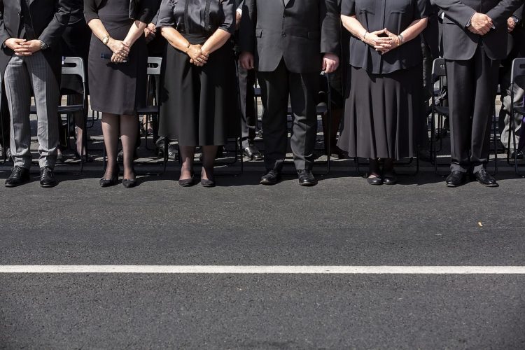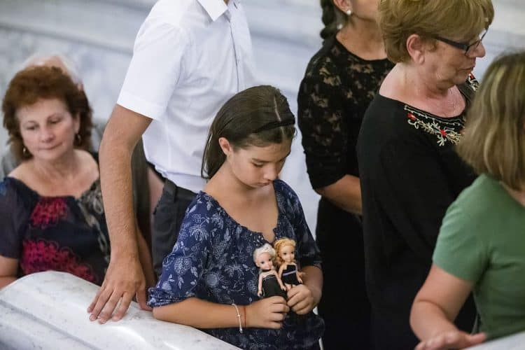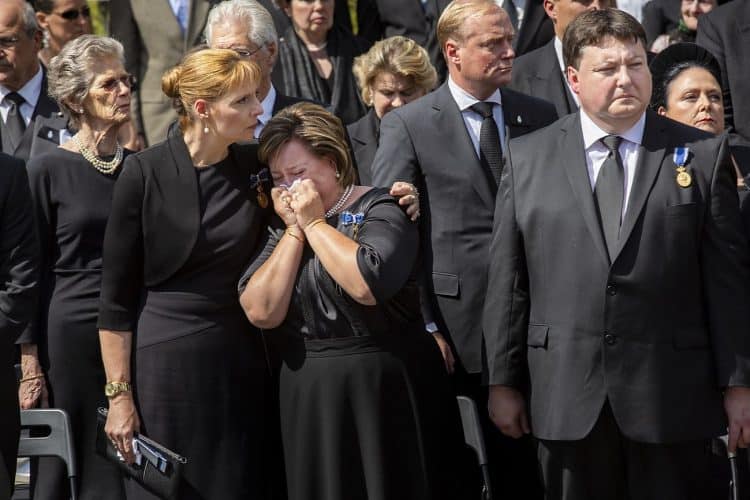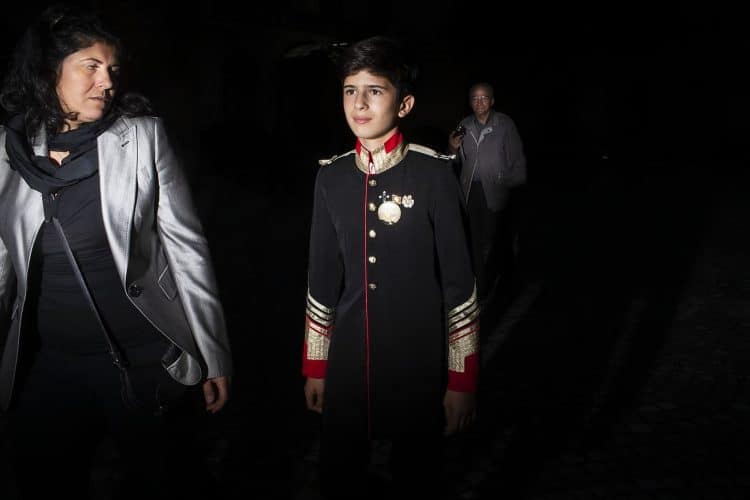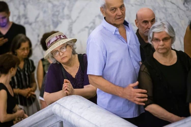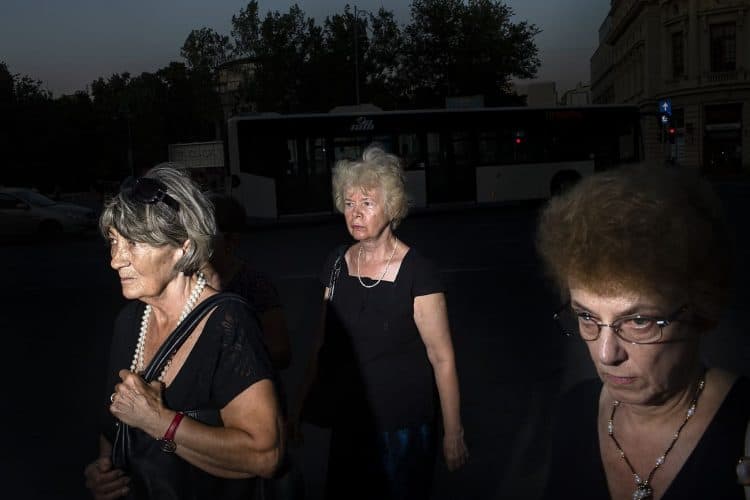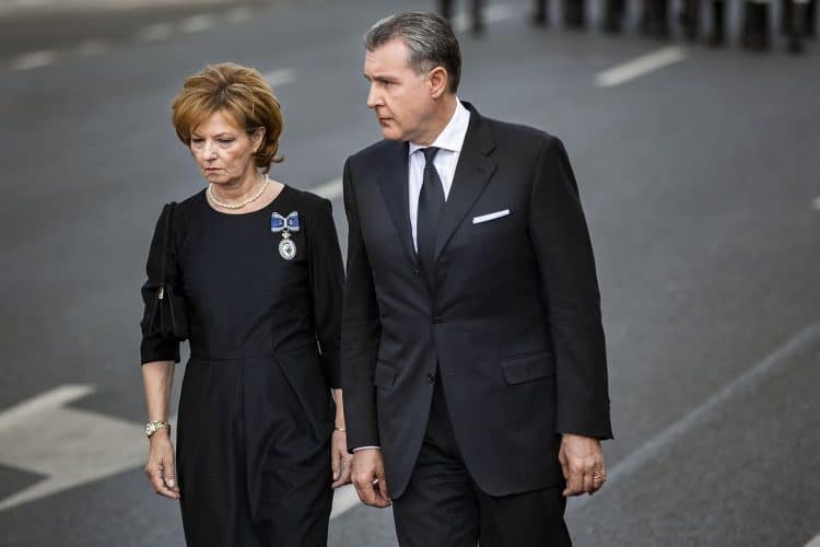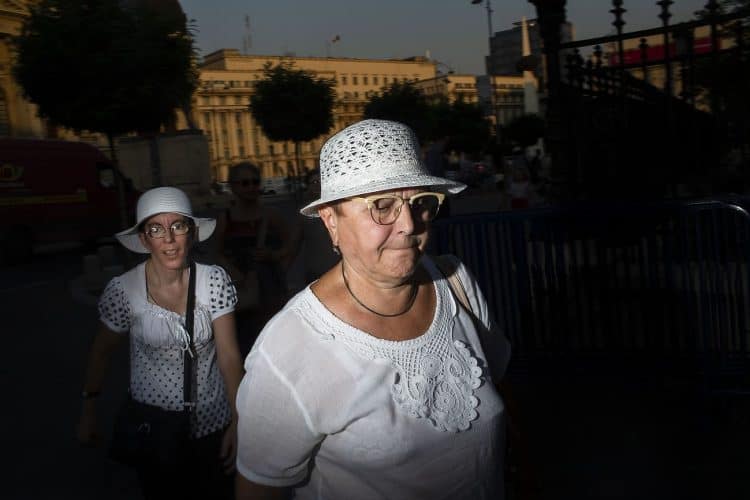 Romania, Bucharest - Aug 13: Romanian Royal family and guests pay respect to the late Queen Anne of Romania as she is moved from the Royal Palace to Curtea de Arges, the burial site for the royal family, as seen in Bucharest August 13, 2016. The body of Anne of Romania, the wife of the Romania’s former king, Michael I of Romania, arrived in Bucharest Tuesday for the royal funeral. Photography by Mugur Varzariu/Getty Images/Newsweek.