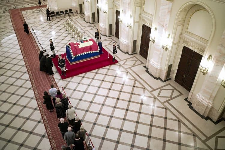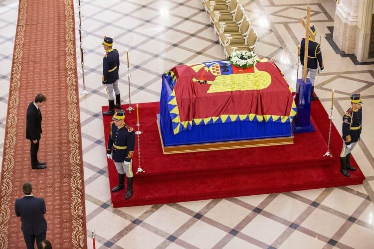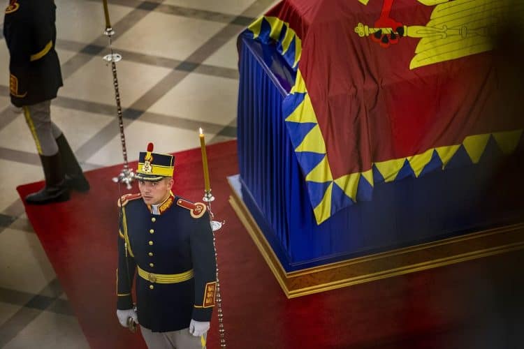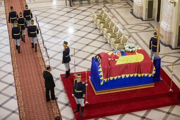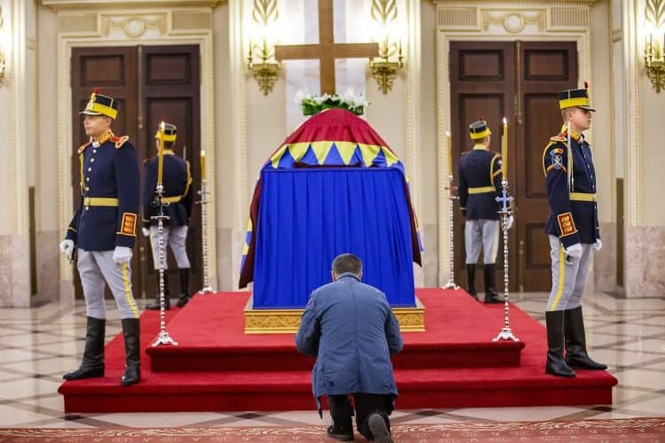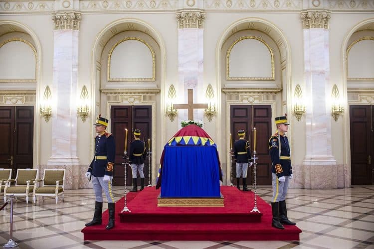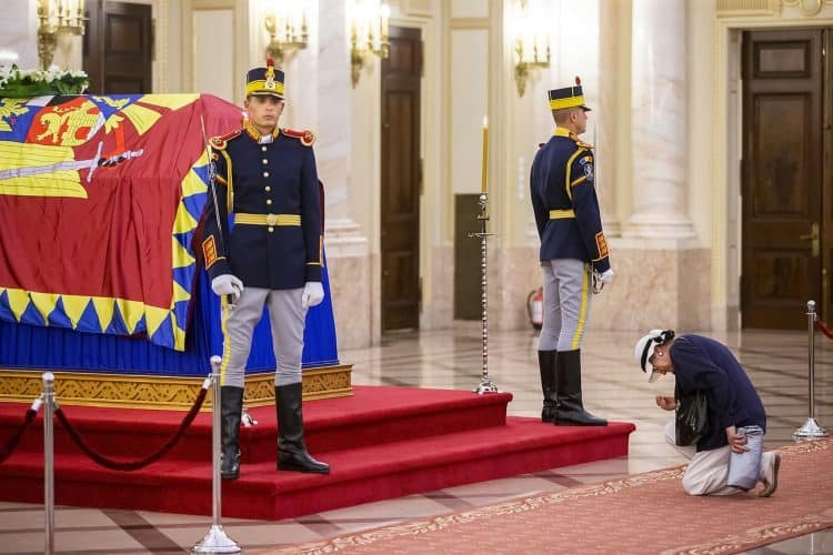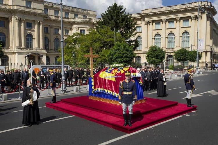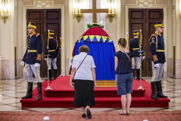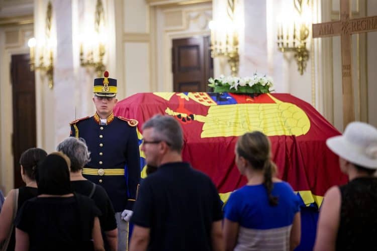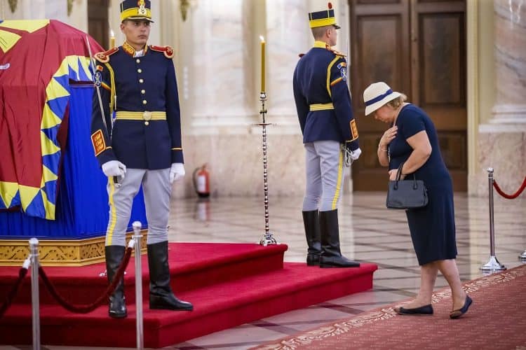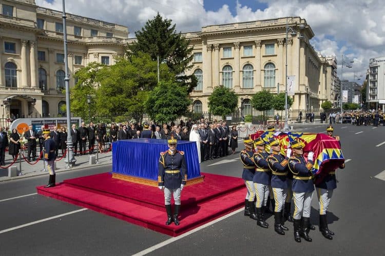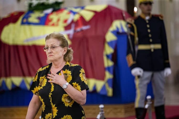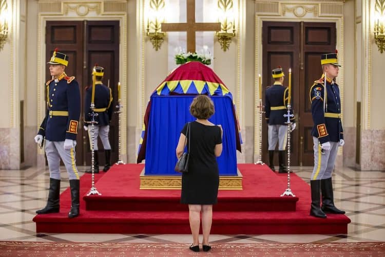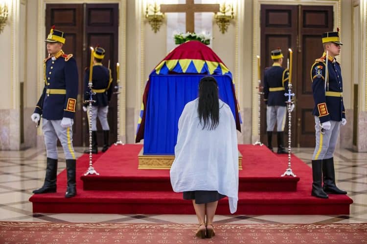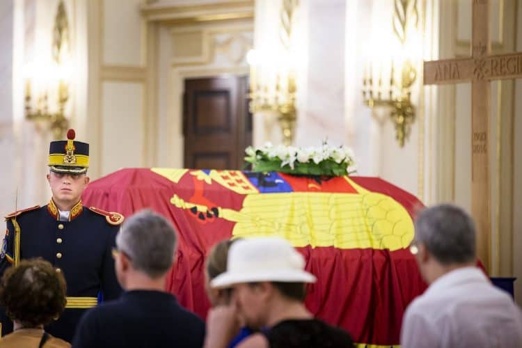 The body of Anne of Romania, the wife of the Romania’s former king, Michael I of Romania, arrived in Bucharest Tuesday for the royal funeral. Photography by Mugur Varzariu/Getty Images/Newsweek.