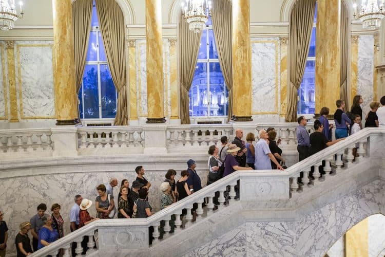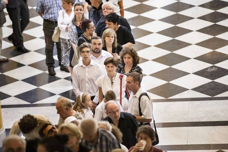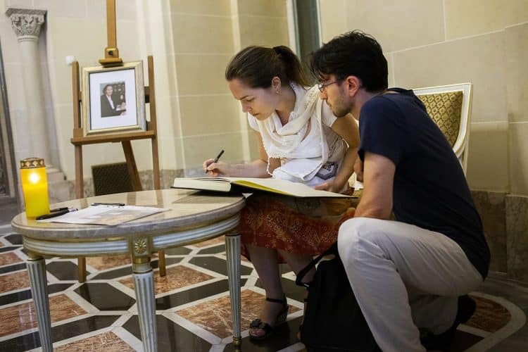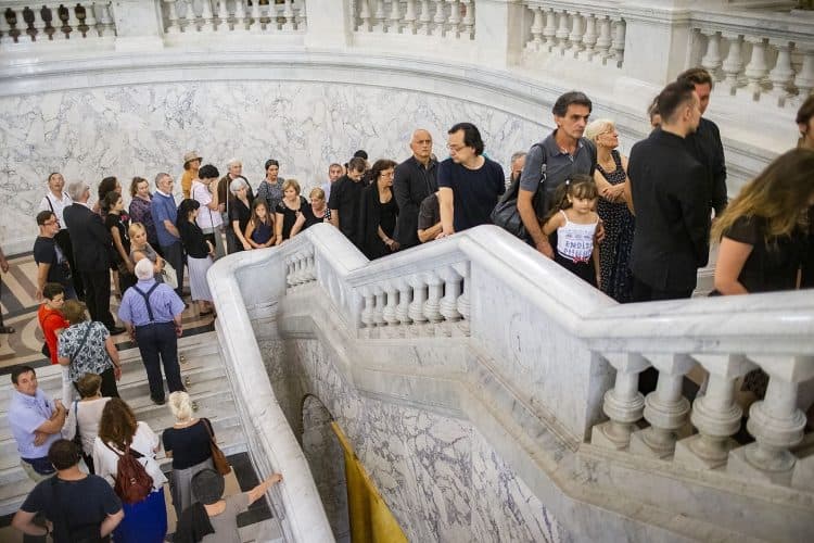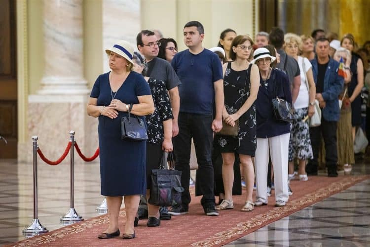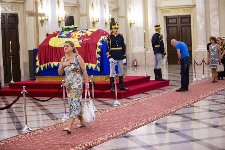 Romania, Bucharest - Aug 11: Romanian pay respect to the late Queen Anne of Romania at the Royal Palace, now The Art Museum of Romania, in Bucharest August 11, 2016.