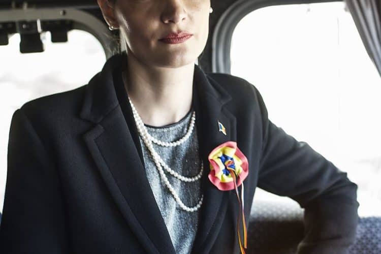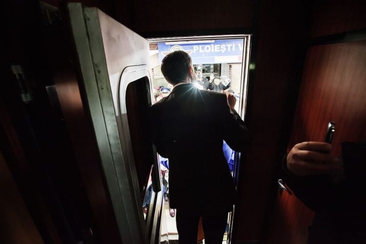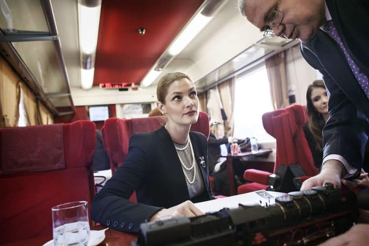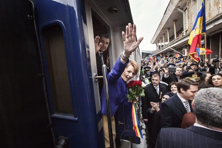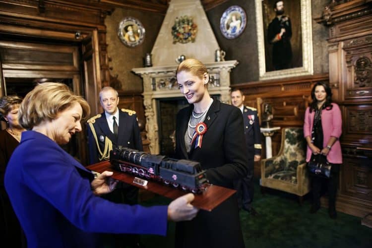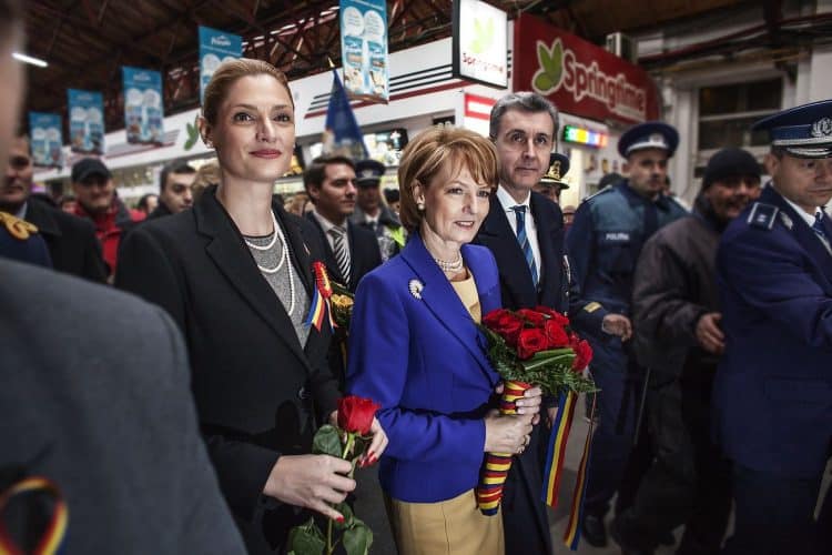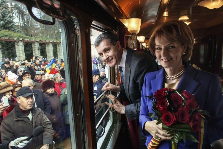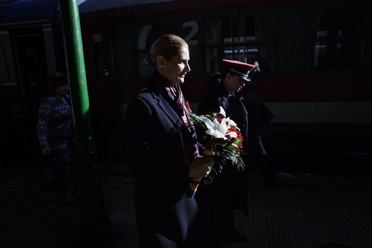 Minister of Transport Ramona Manescu disembarking the locomotive, on her way to meet with Princess Margaret of Romania, daughter of the King of Romania Michael and her husband Prince Radu of Romania, as seen on December 1, 2013.