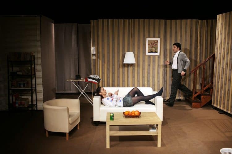 Romanian actors Florentina Tilea and Silviu Biris rehearsing for the opening of the comedy play 'Nobody is Perfect', directed by Radu Beligan, as seen in Bucharest on January 14, 2011.