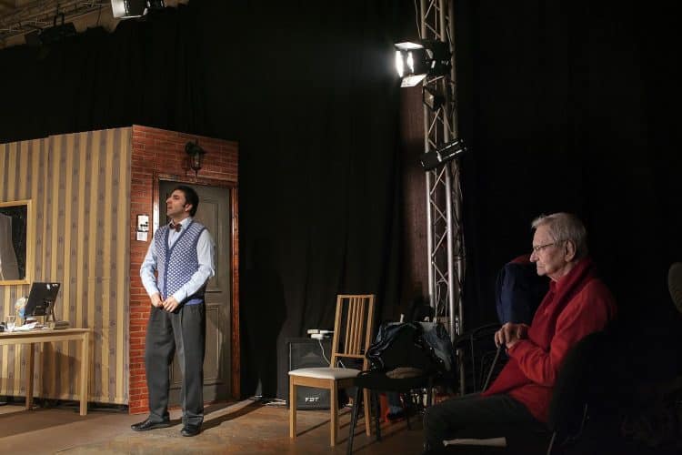 Romanian actor Silviu Biris rehearsing for the opening of the comedy play 'Nobody is Perfect', directed by Radu Beligan (image right), as seen in Bucharest on January 14, 2011.