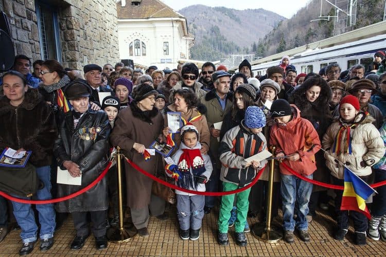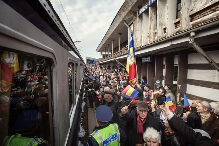 Royalists gathered at the railways station in Sinaia awaiting for the Royal family to arrive and embark on the Royal Train, as seen on December 1, 2013.