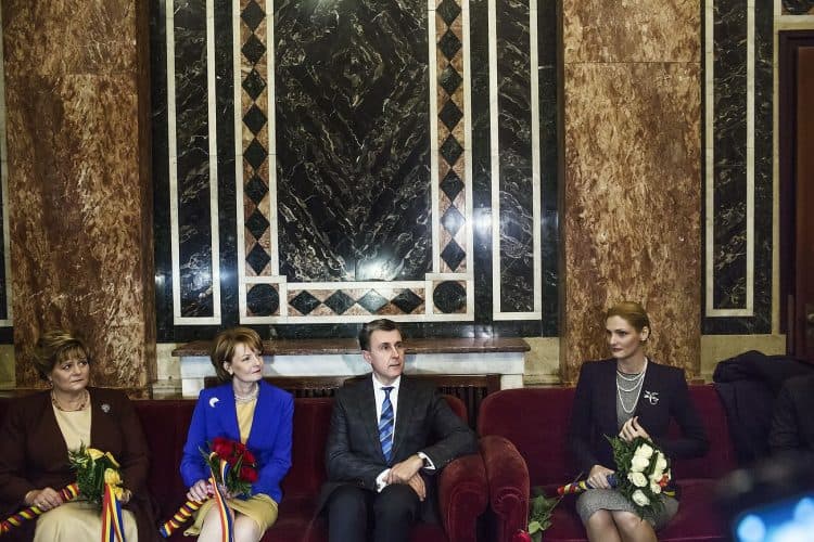 Princess Elena, Princess Margaret of Romania, daughter of the King of Romania Michael, her husband Prince Radu of Romania and Minister of Transport Ramona Manescu, as seen inside the Royal Salon at Gara de Nord, on December 1, 2013. The Royal Salon was reopened for the first time since the former King of Romania Machiel I was forced to abdicate in 1947.