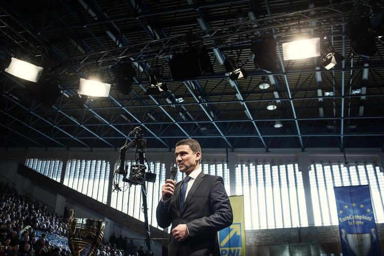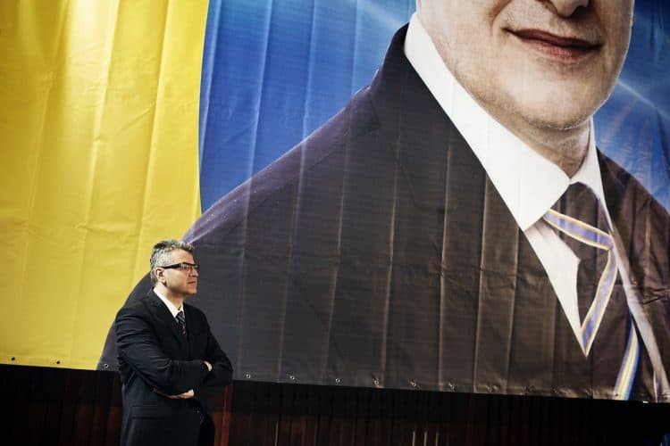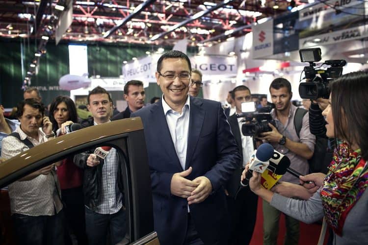 Romanian prime minister Victor Ponta attends the annual auto fair, as seen in Bucharest on October 19, 2012.