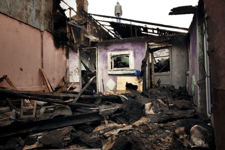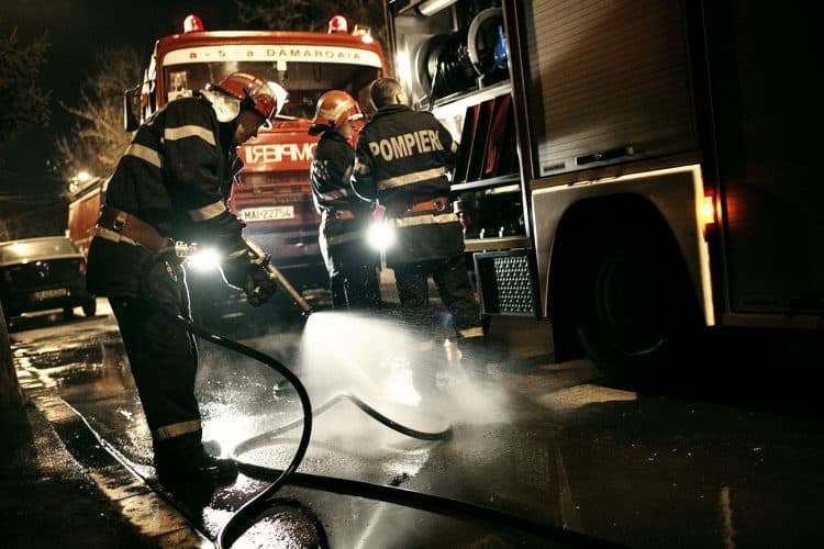 Fireman washes the hose used in puting out a fire on Carpati Street in Bucharest as seen on March 25, 2012.