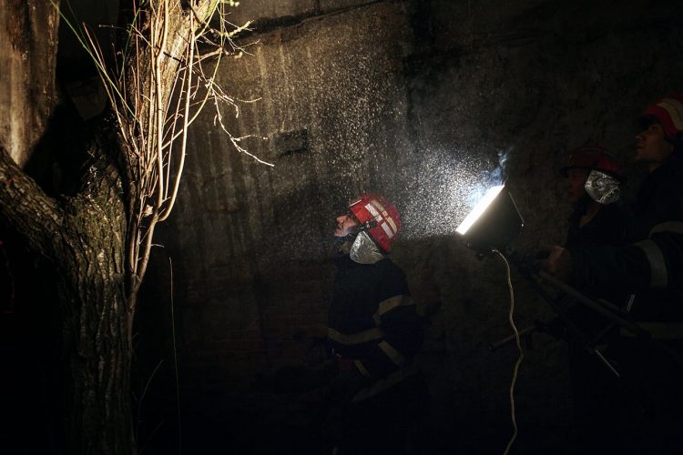 Firemen act to put out a fire on Carpati Street in Bucharest as seen on March 25, 2012.