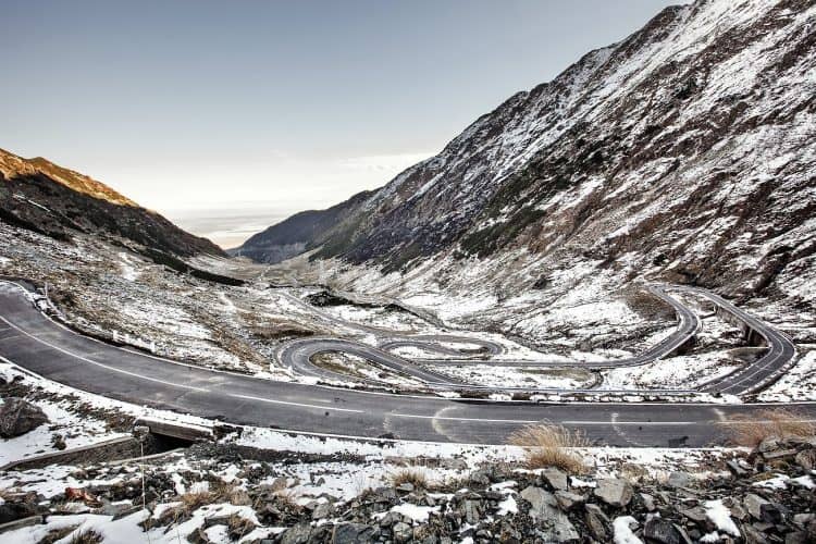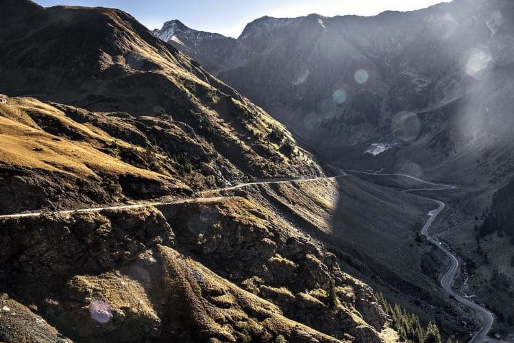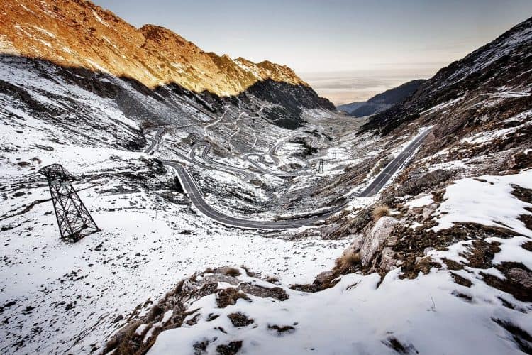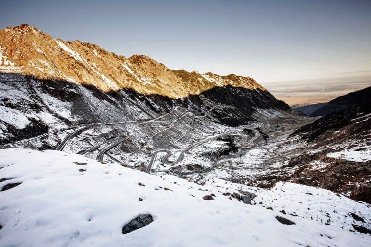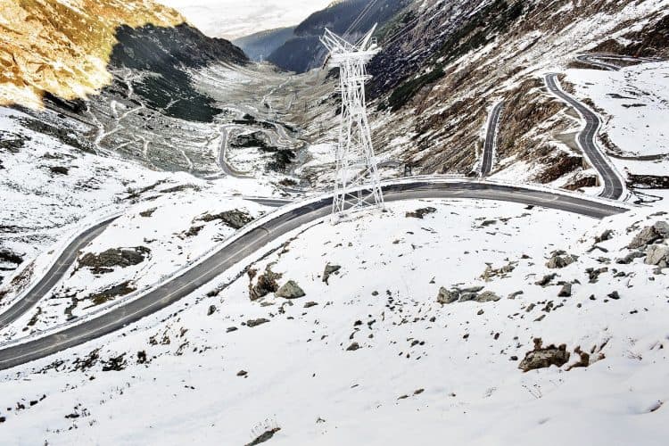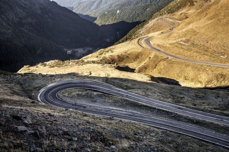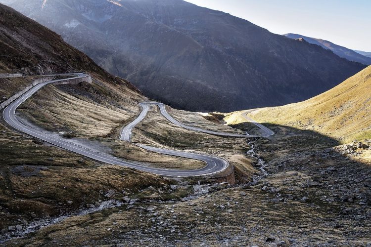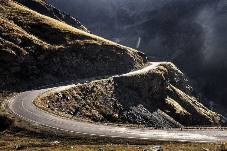 The Transfagarasan or DN7C is the second-highest paved road in Romania. Built as a strategic military route, the 90 km of twists and turns run north to south across the tallest sections of the Southern Carpathians, between the highest peak in the country, Moldoveanu, and the second highest, Negoiu. The road connects the historic regions of Transylvania and Wallachia, and the cities of Sibiu and Pitesti.