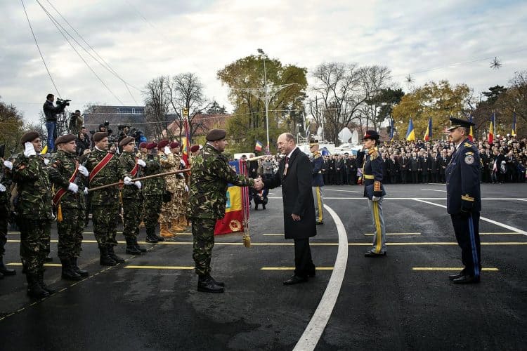 Romanian president Traian Basescu opens the ceremonies marking the National Day of Romania, as seen on December 1, 2012.