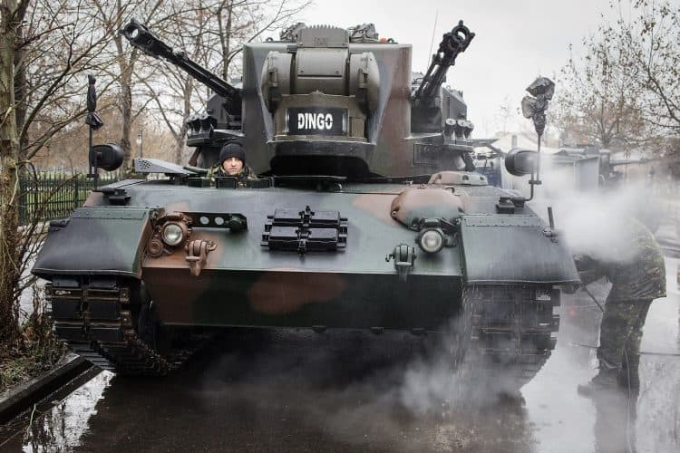 Romanian tanks ready to march as part of a military parade to mark Romania's national day in Bucharest, Romania, Monday, Dec. 1, 2014. Romanians braved the cold weather to watch the traditional armed forces parade, held outside the Palace of Parliament formerly the House of the People, seen in the background, built during the rule of communist dictator Nicolae Ceausescu.